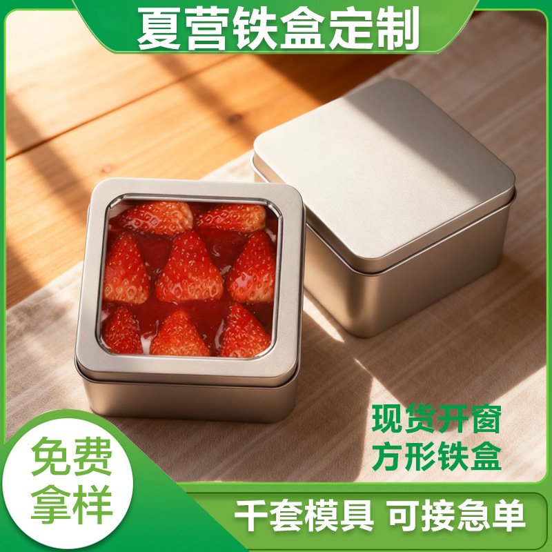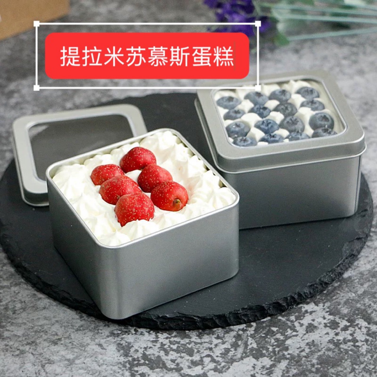 现货小红书爆款慕斯蛋糕铁盒 厂家批发正方形透明开窗马口铁罐