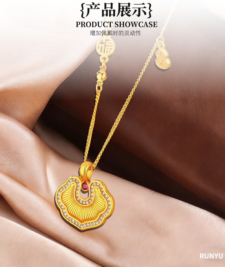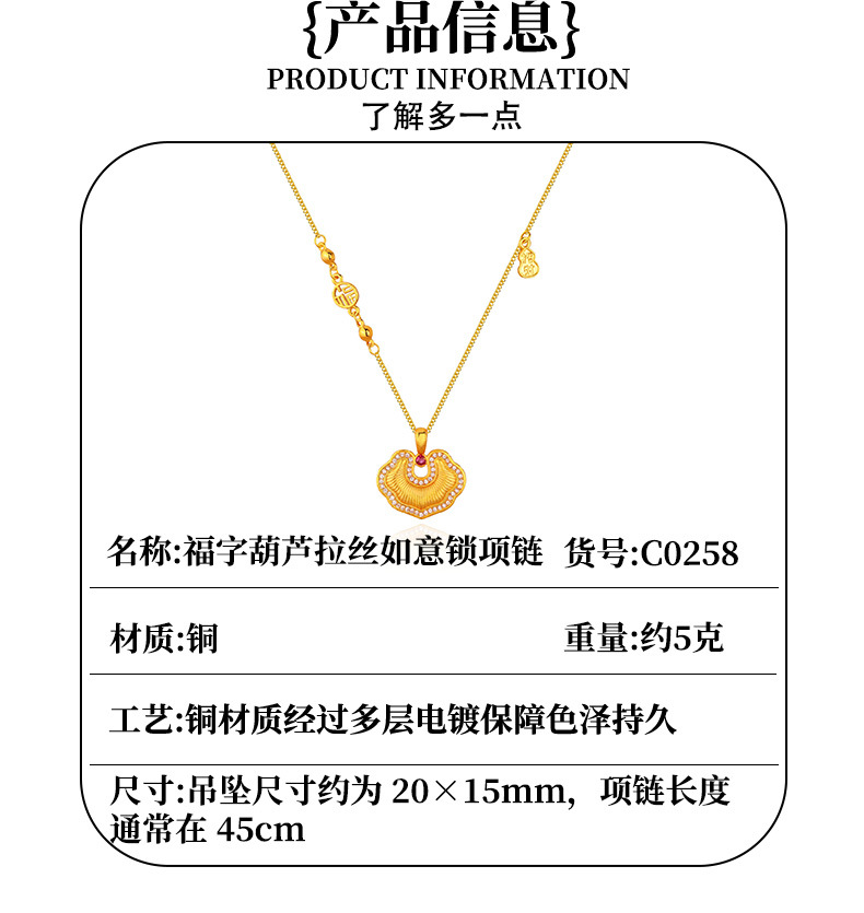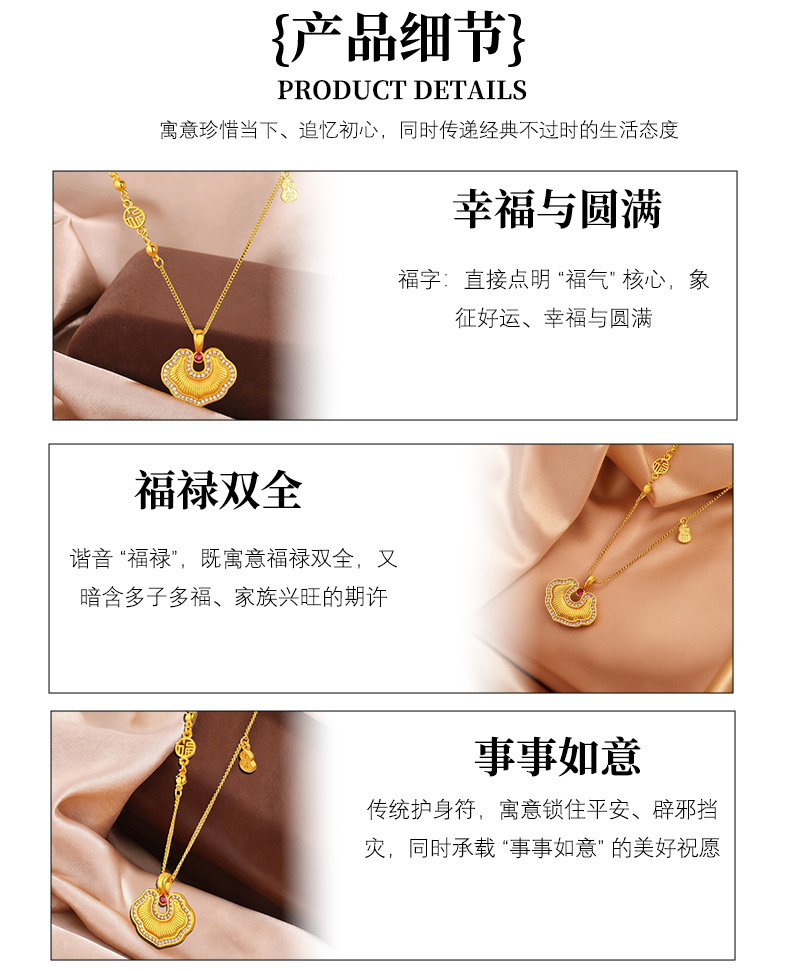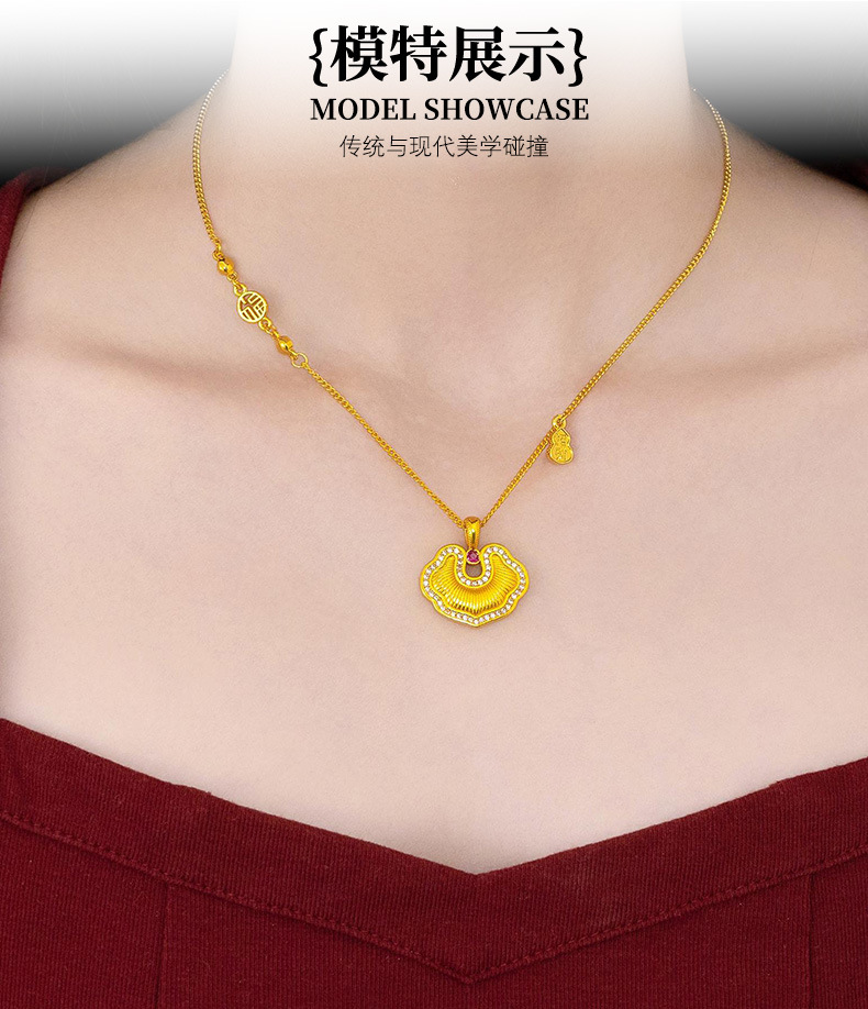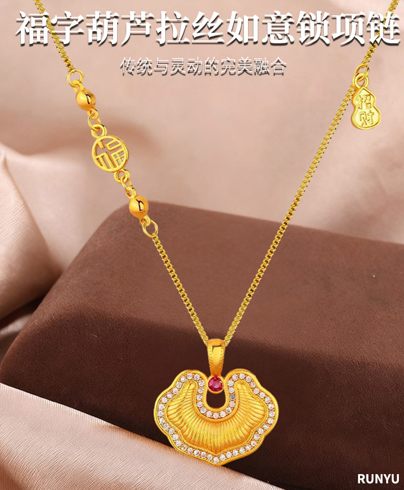 福字葫芦拉丝如意锁项链女新中式复古古法设计小众气质轻奢锁骨链