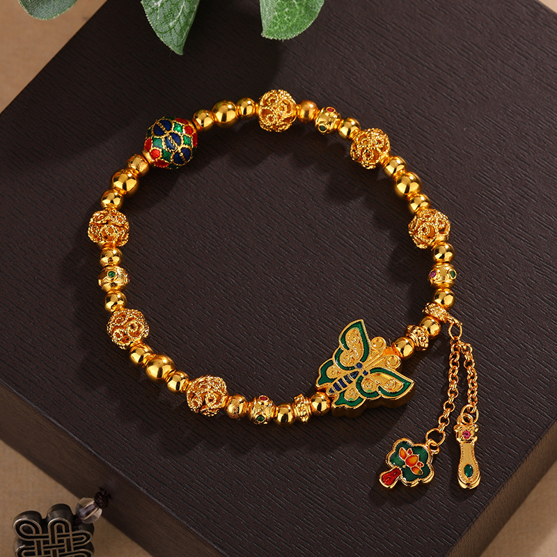 ゴールドストアと同じスタイルの古代サンドゴールドブレスレット、ビーズ、軽い高級感、エナメルカラー、長持ちするチェーンブレスレット