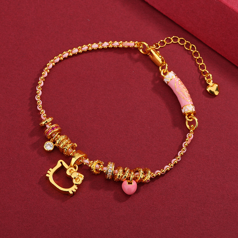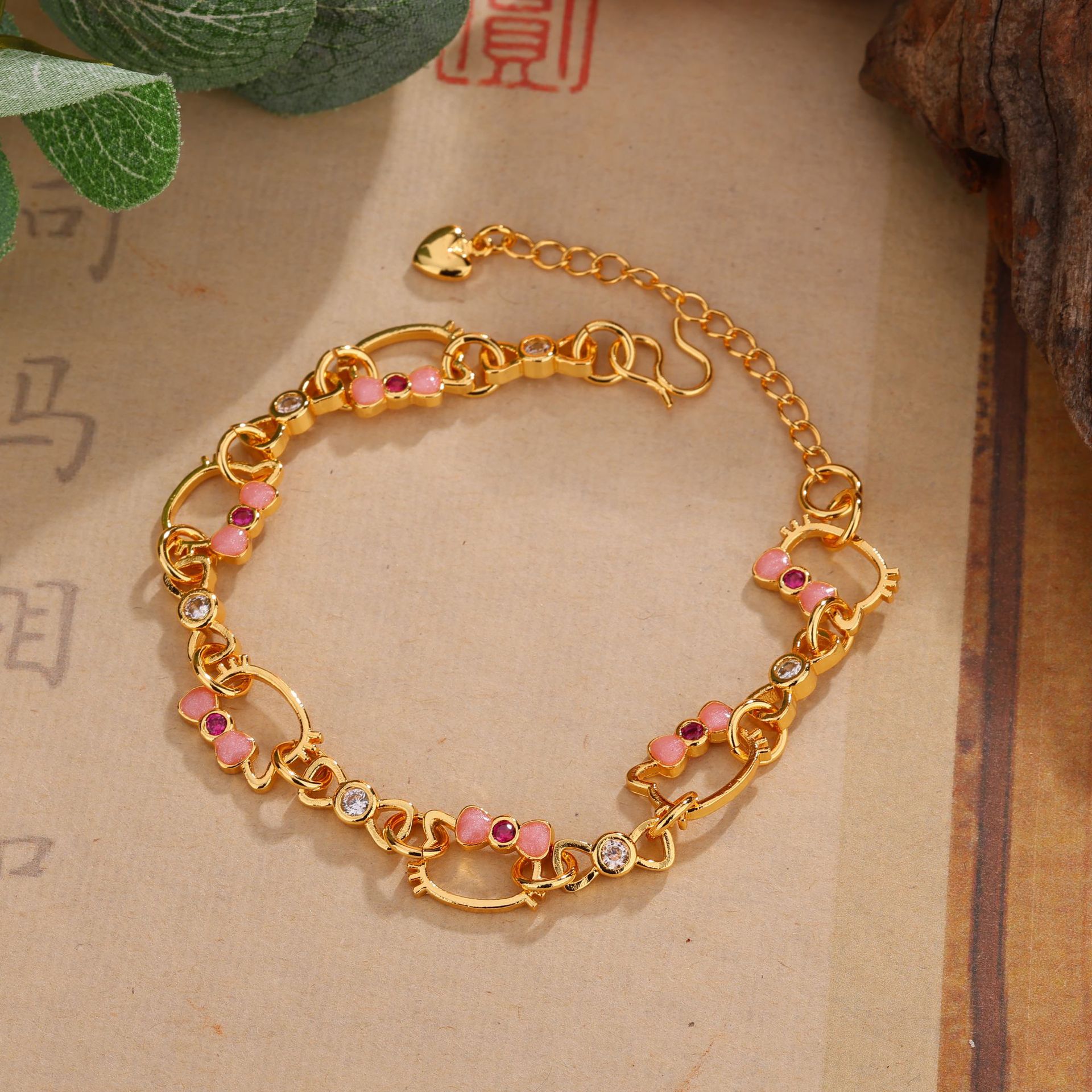18kメッキの金は型抜きしないピンクの少女kt猫のブレスレットは簡単に爆発します。