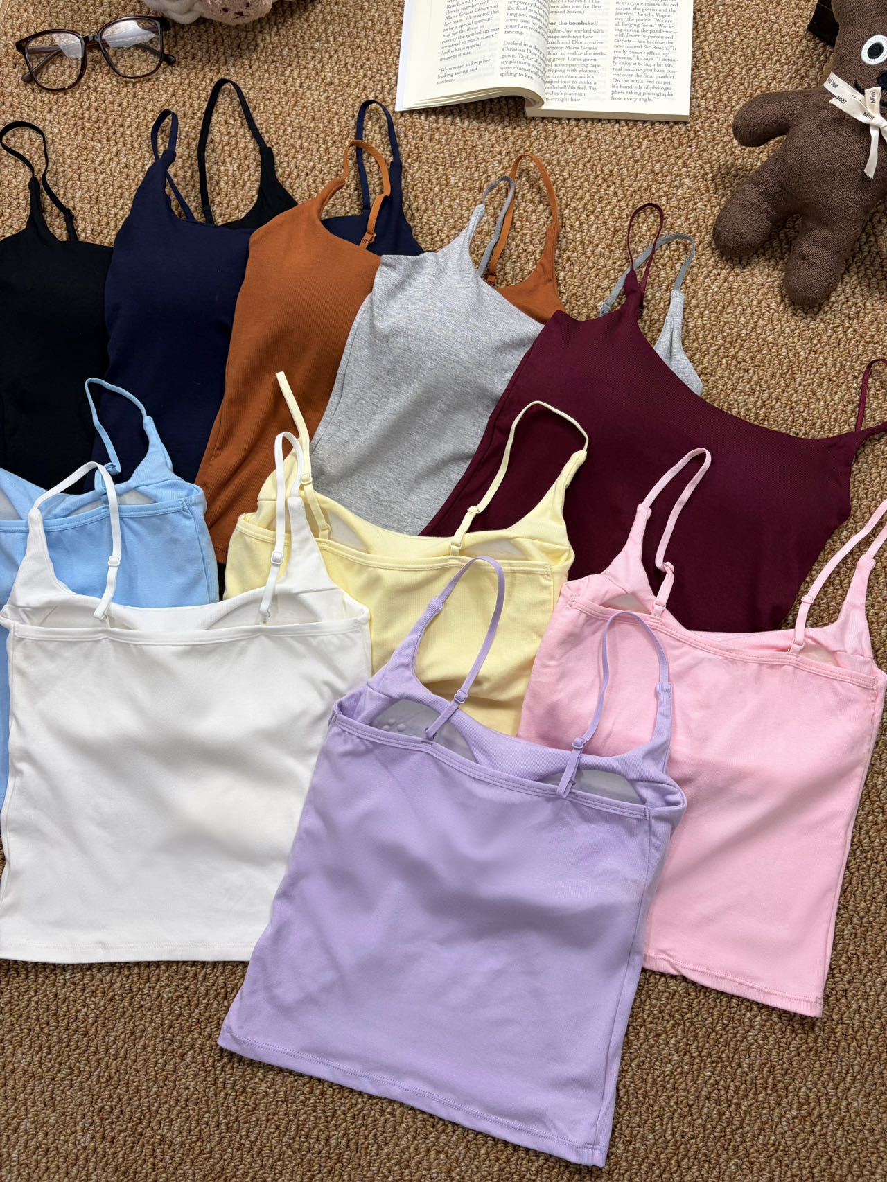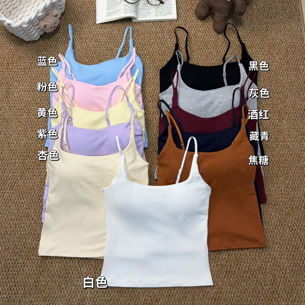 11色!!纯色百搭背心高弹莫代尔自带胸垫内搭纯欲风少女舒适内衣