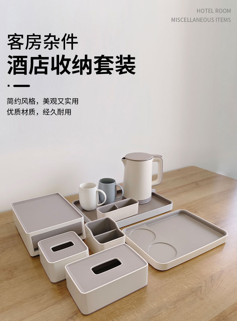 ホテル収納ボックスティッシュボックス用品absセット高級合成樹脂ホテル消耗品大トレー