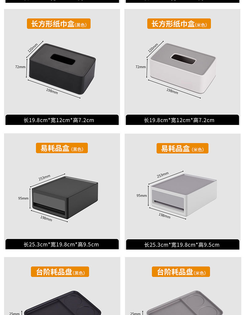 颜色 耗品盒-有杯孔(白),方纸巾盒(白),长方型纸巾盒(白),遥控器盒(白),双格茶叶盒(白),托盘(白),皂碟(白),耗品盒-有杯孔(黑),方纸巾盒(黑),长方型纸巾盒(黑),遥控器盒(黑),双格茶叶盒(黑),托盘(黑),皂碟(黑)