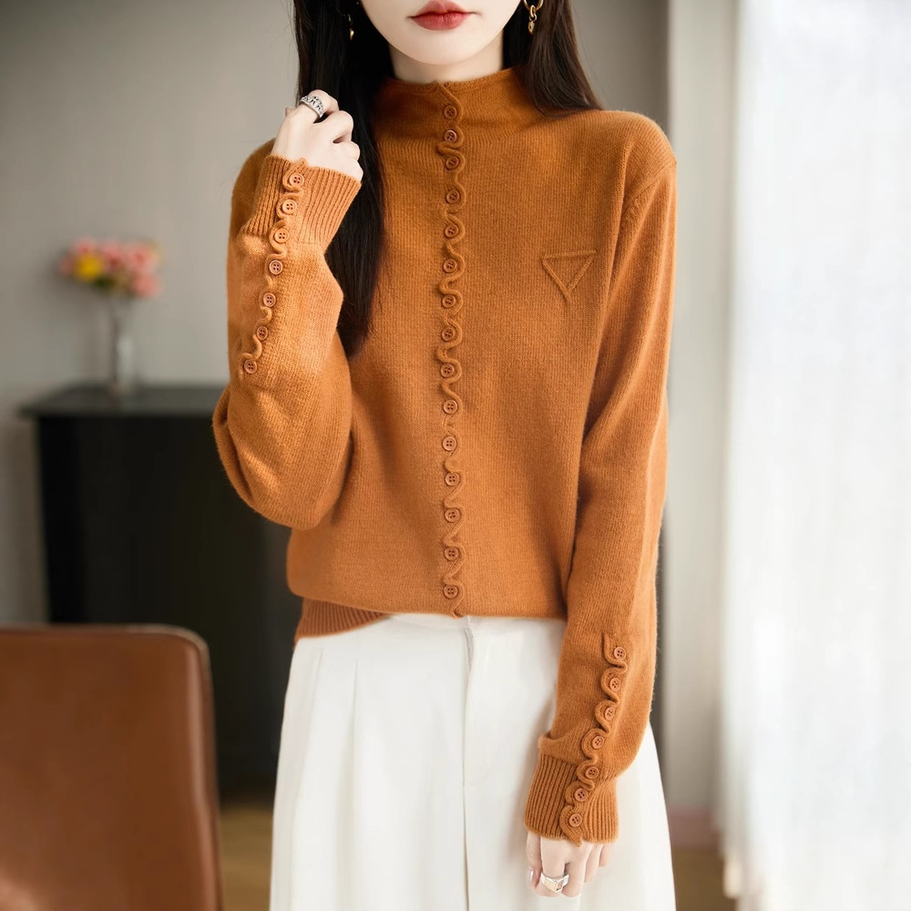 波浪边欧洲站2025秋季新款韩版时尚高领宽松百搭显瘦羊毛针织开衫
