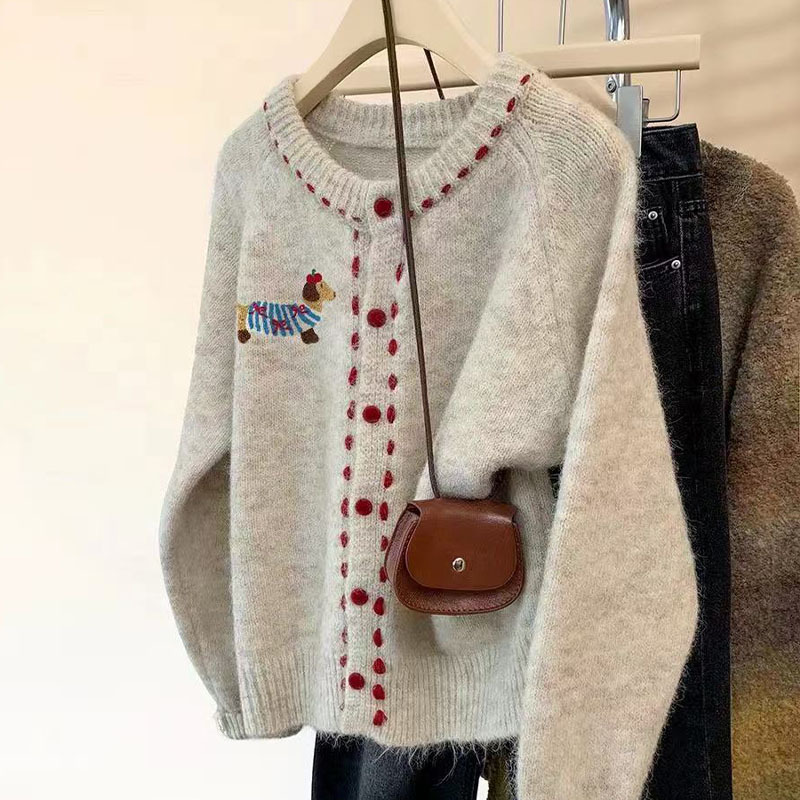 2024秋冬新作韓国版女性丸首長袖ニットカーディガンカシミヤの上着