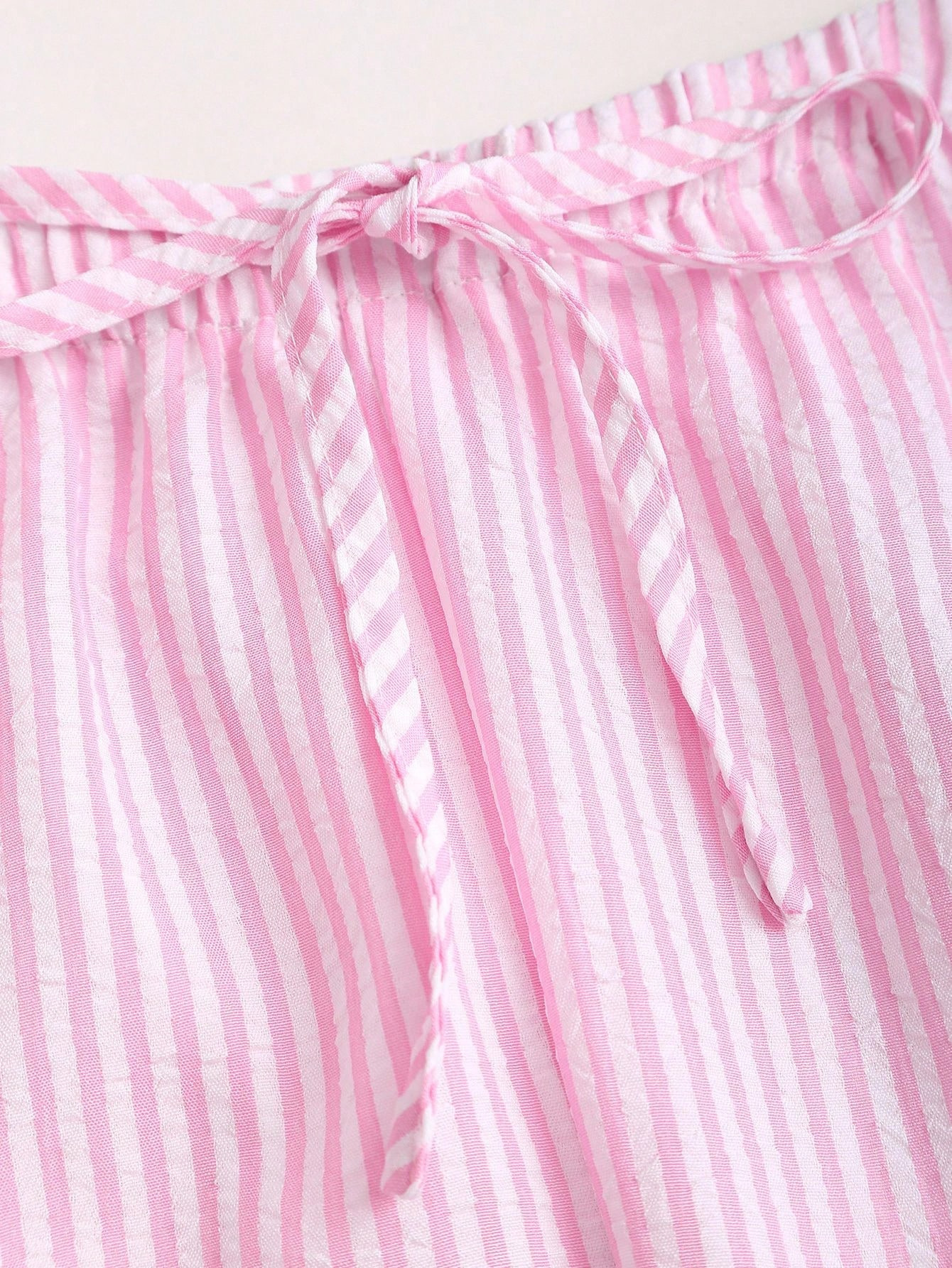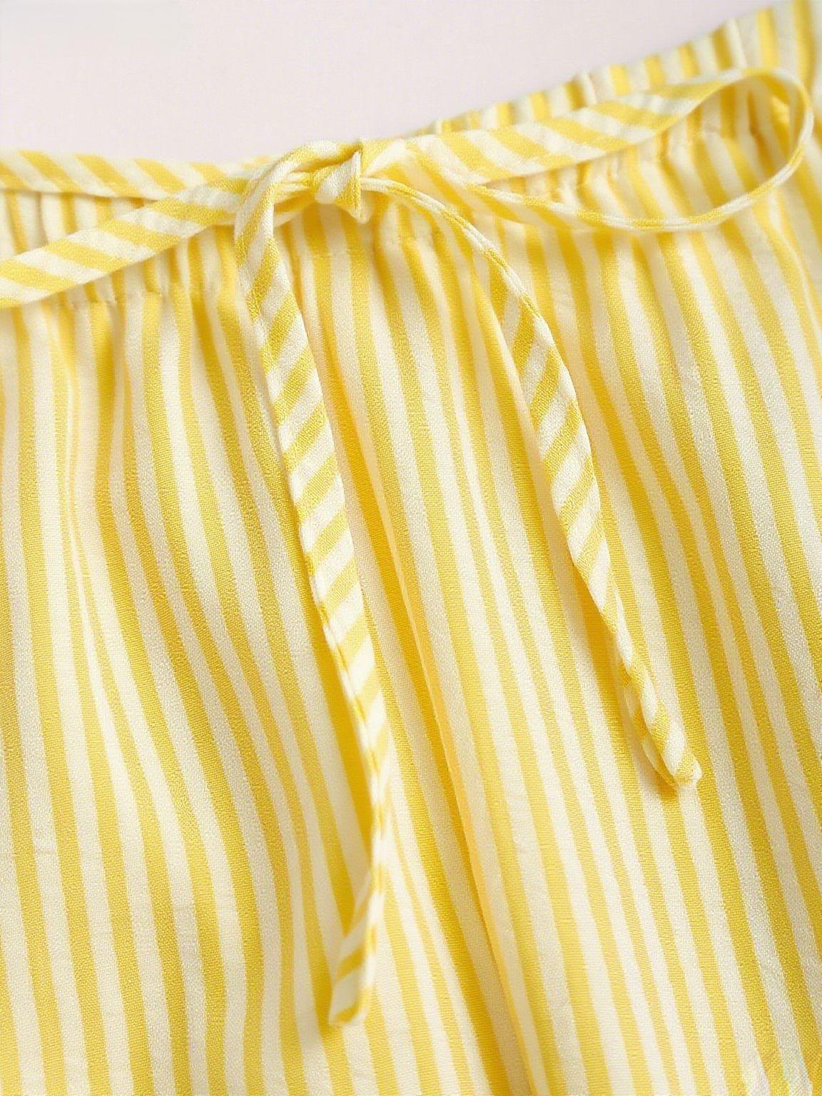 纯色条纹套装休闲系带百搭套装夏季背心宽松系带纯色休闲甜美长裤