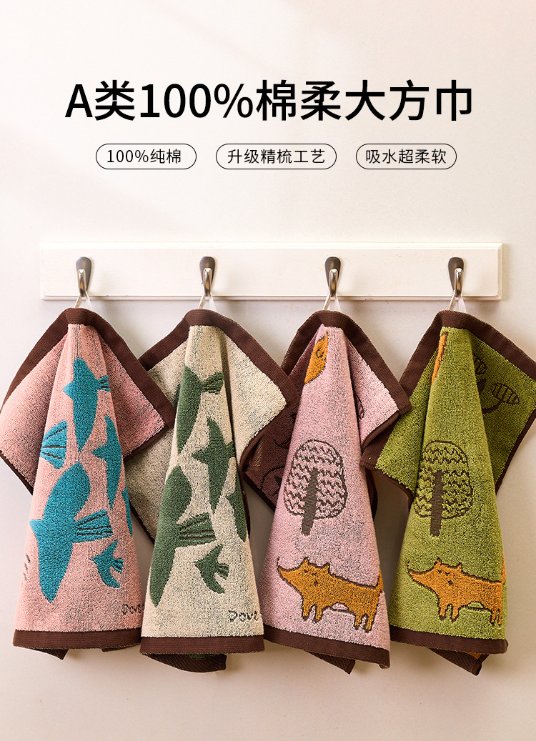a类纯棉方巾成人家用吸水洗脸毛巾柔软亲肤2025新款全棉儿童擦脸