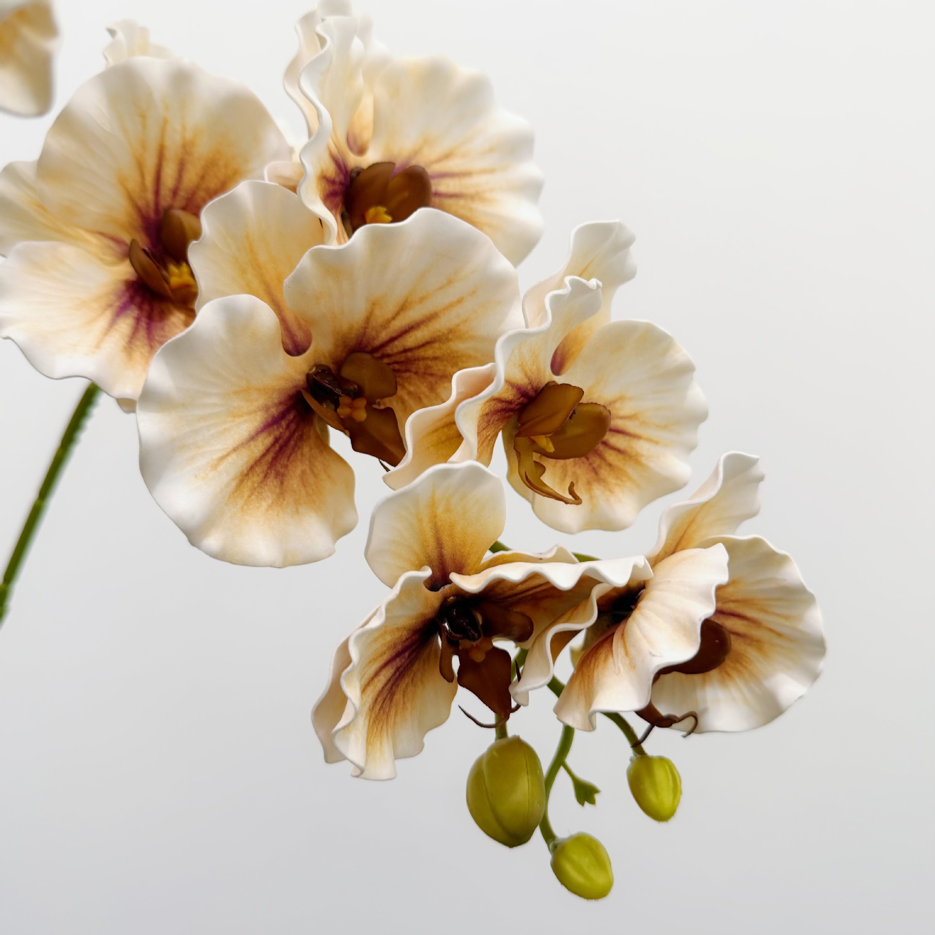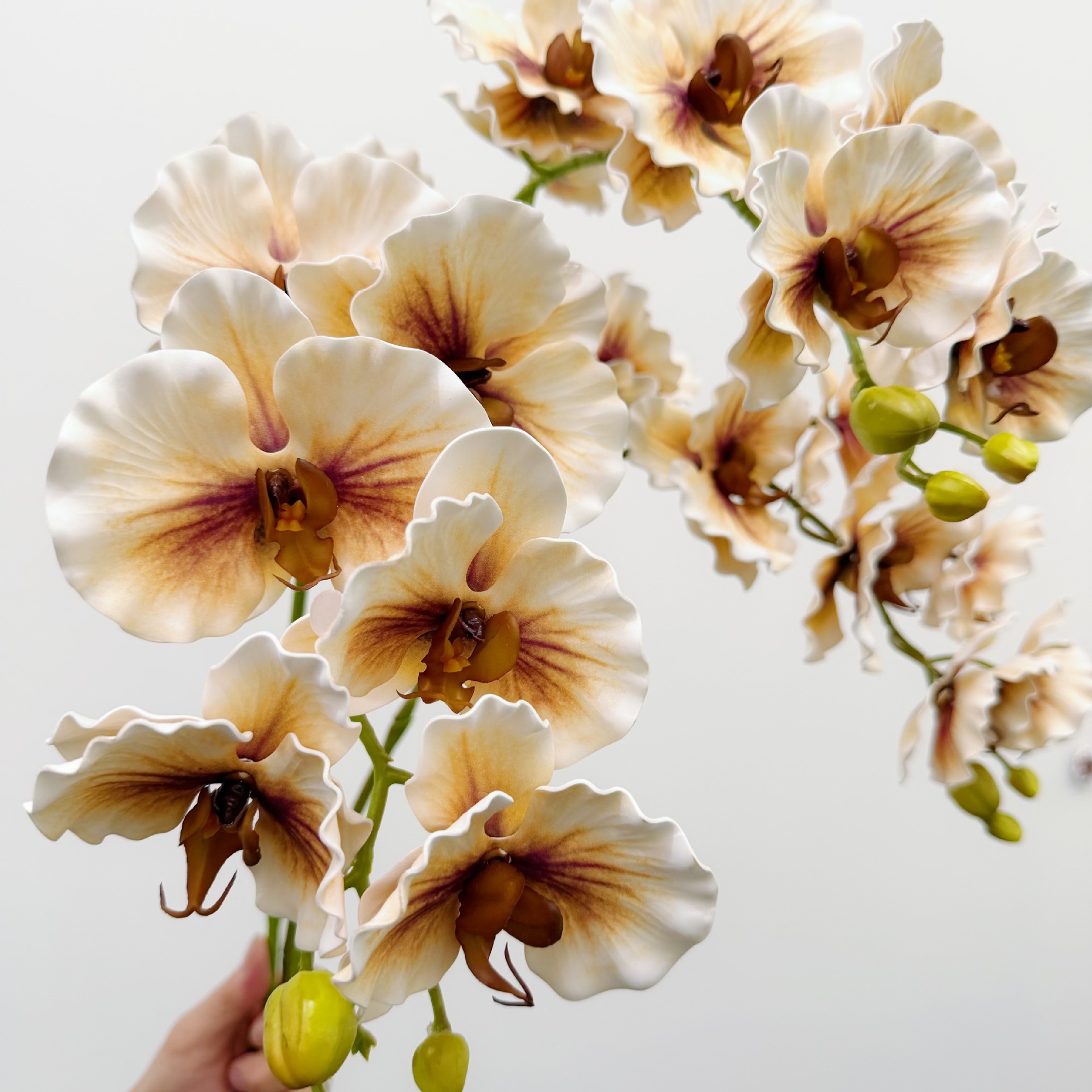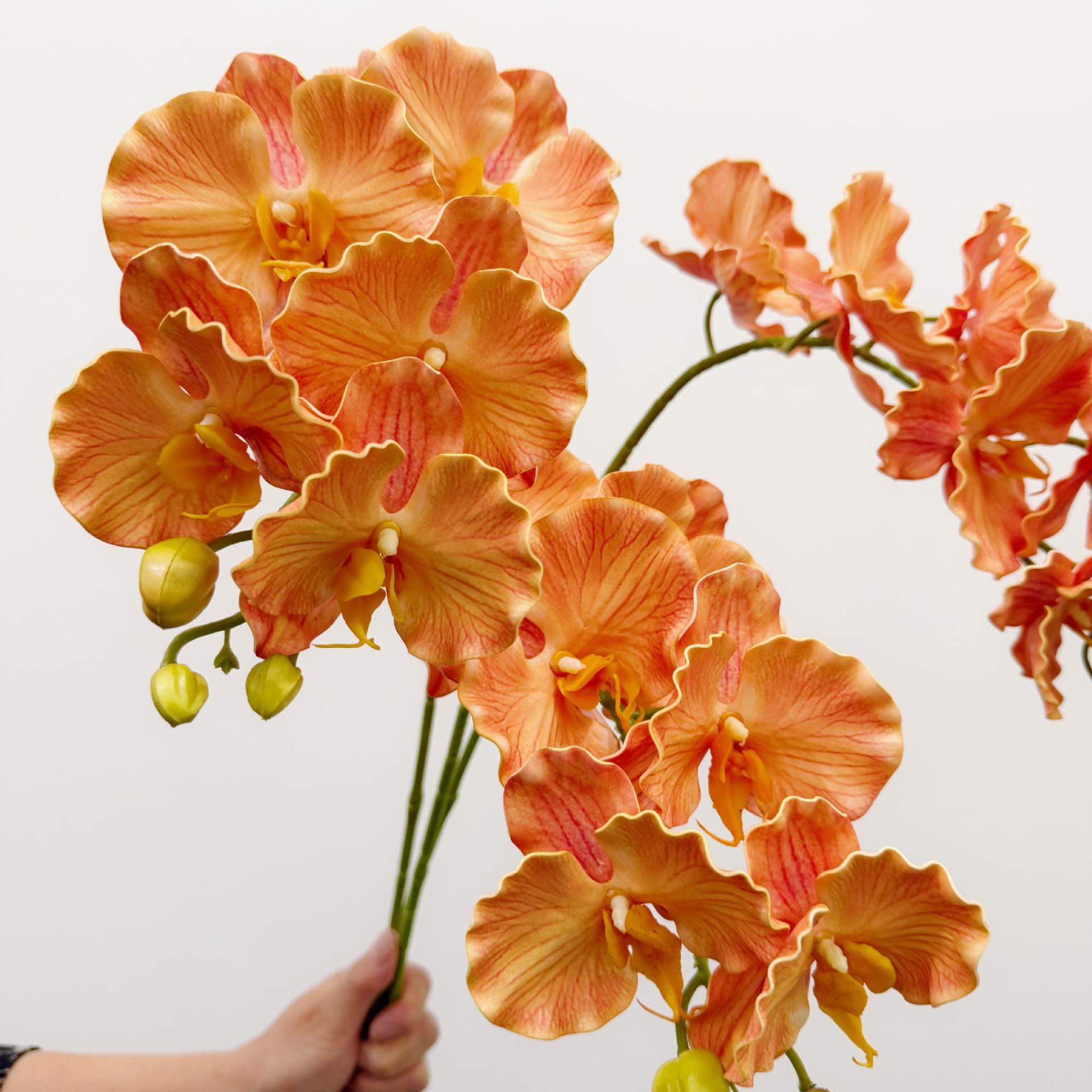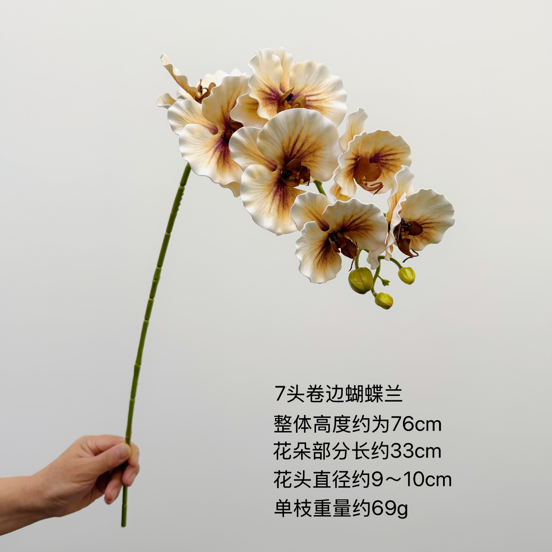 含阳EVA仿真7头硅胶棉卷边蝶兰欧式手感兰花婚礼花艺家居布置装饰