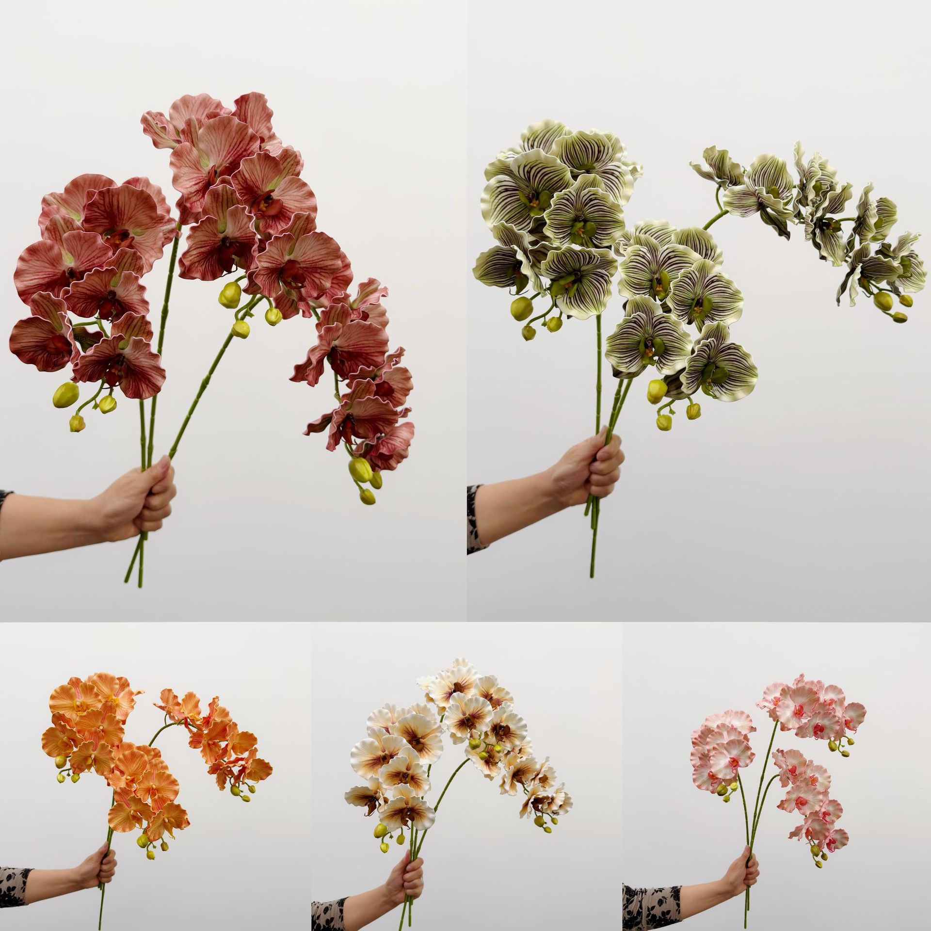 颜色 7头卷边蝴蝶兰【桃粉】,7头卷边蝴蝶兰【红棕】,7头卷边蝴蝶兰【橘黄】,7头卷边蝴蝶兰【白棕】,7头卷边蝴蝶兰【绿精灵】,7头蝴蝶兰【白】