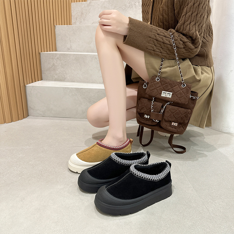 2025冬季反绒皮真皮雪地靴女韩版厚底懒人一脚蹬套脚休闲雪地棉女