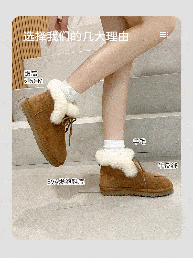 2025冬季新品波西复古风羊毛内里雪地靴女平底加绒加厚雪地棉女鞋