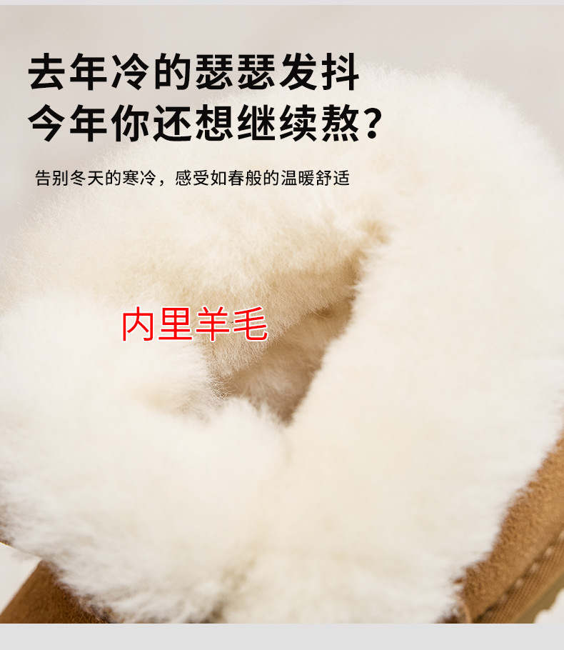 2025秋冬款真皮雪地靴女厚底加绒加厚棉鞋女一脚蹬休闲加棉雪地靴