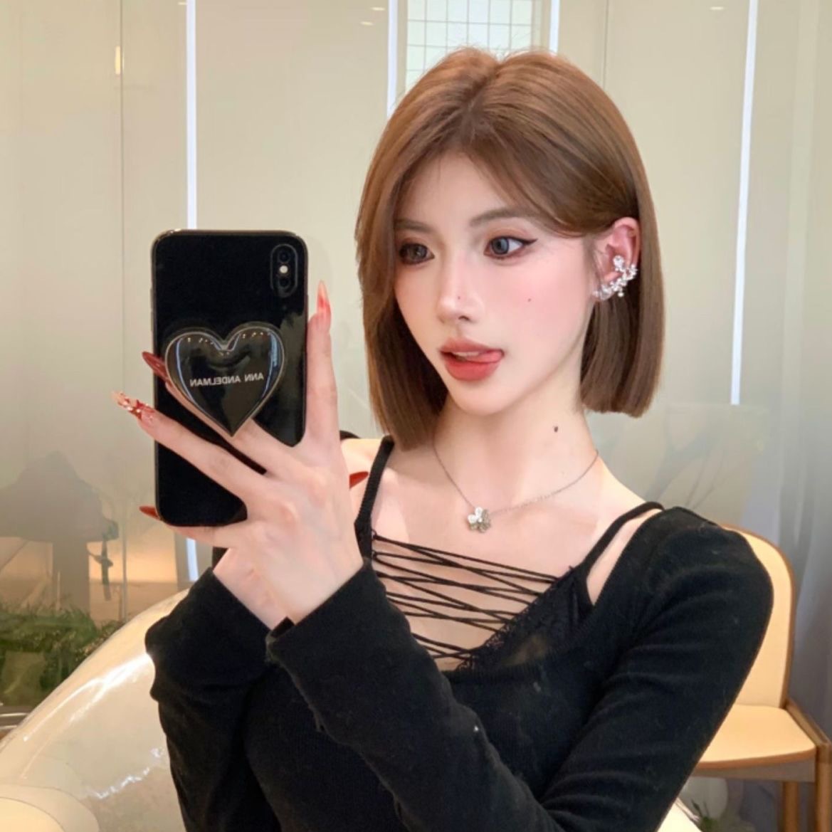 科尼假发网红韩式假发女短发一刀切气质修脸减龄中分亚麻浅棕短直