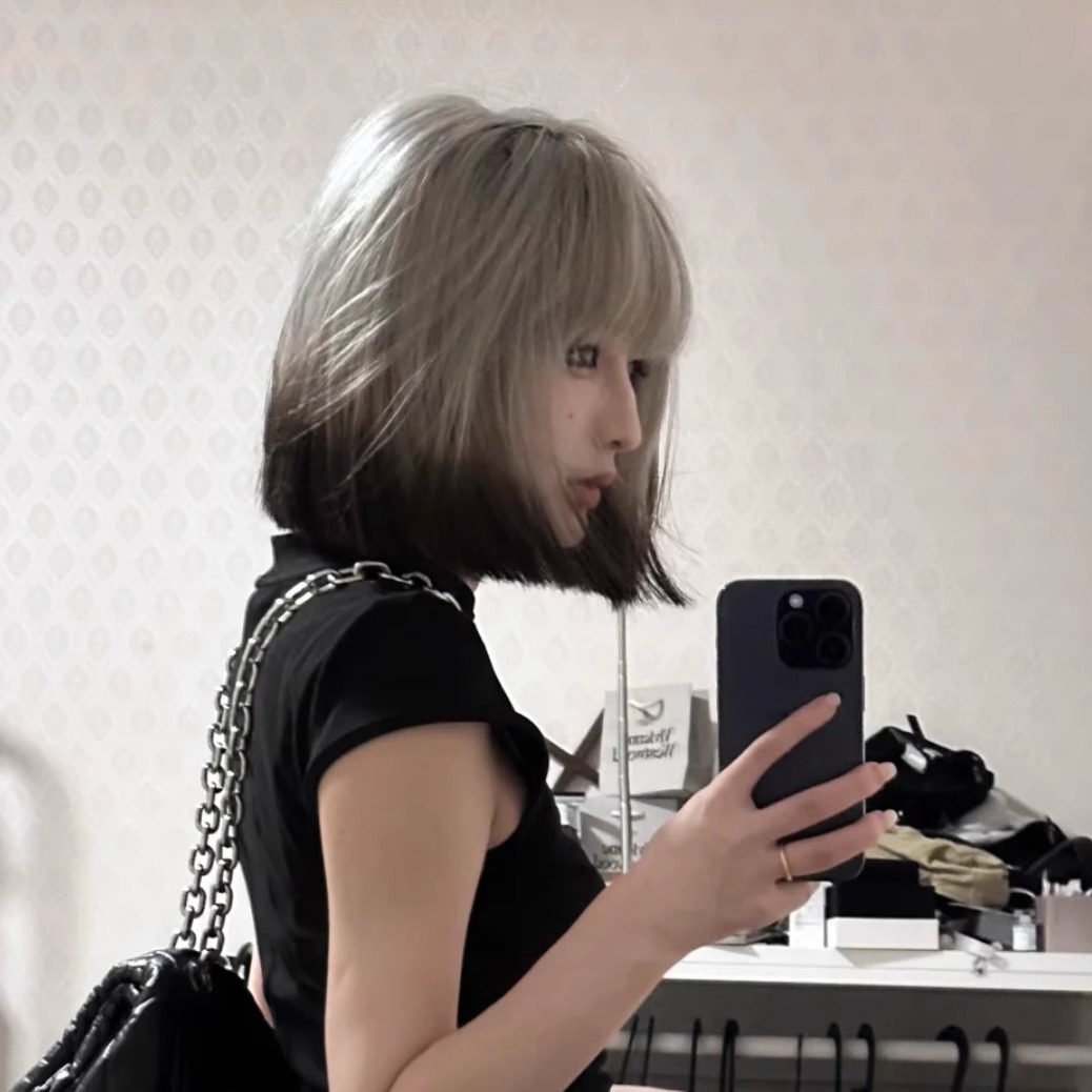 科尼假发一刀切假发短发黑白金渐变亚文化女全头套浅色彩色齐肩发