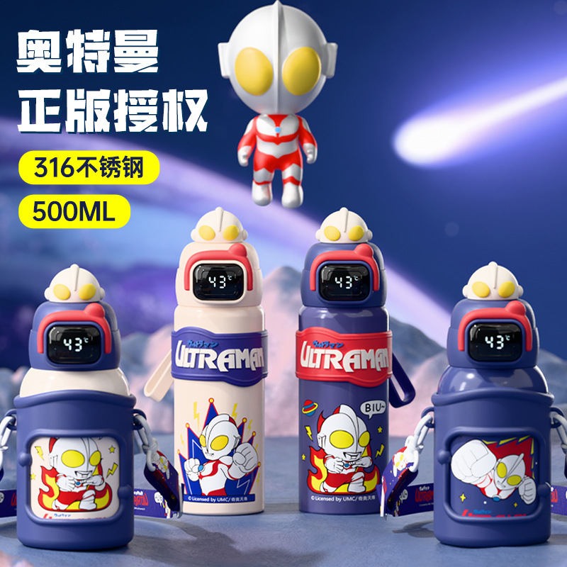 ウルトラマン漫画学生子供水カップ316ステンレス食品級材質知能顕温ダブルドリンク保温カップ