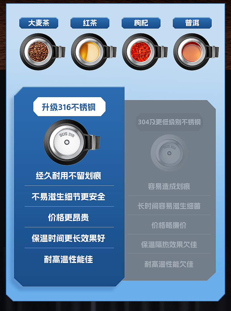 保温杯材质 内底316内壁304外201
