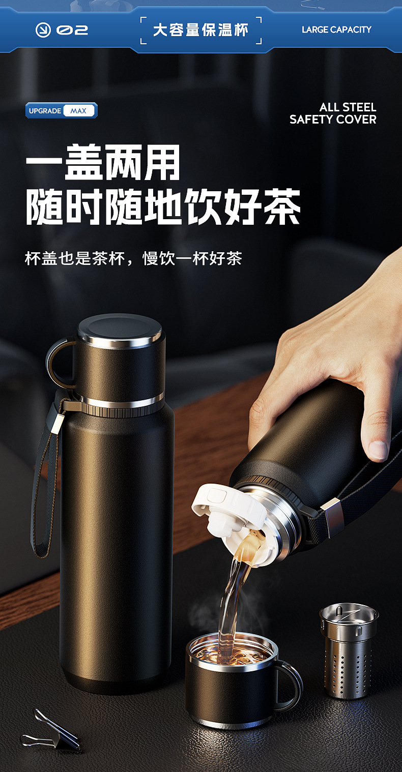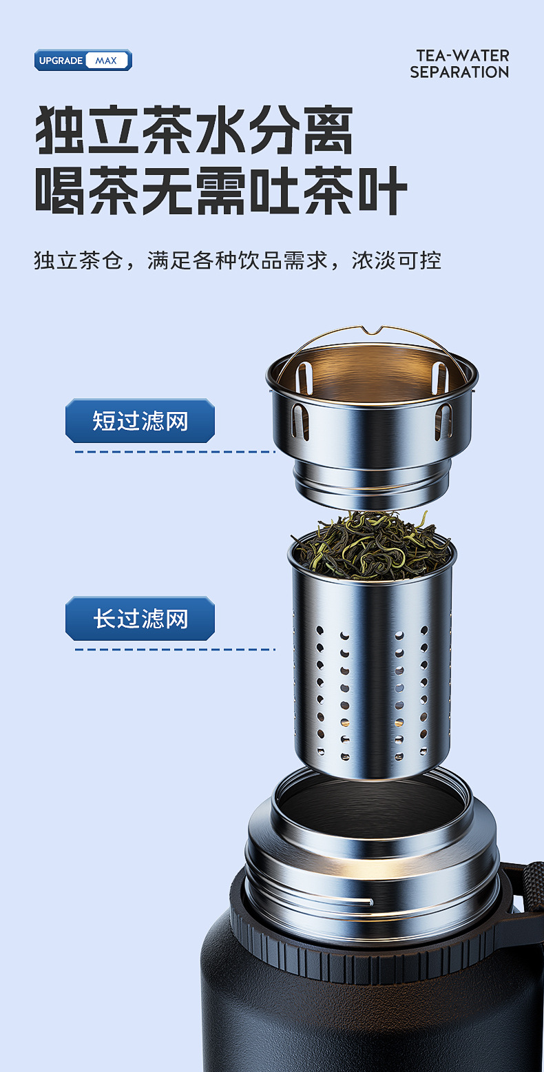 保温杯男士大容量茶杯便携316不锈钢茶水高颜值水壶分离水杯代发