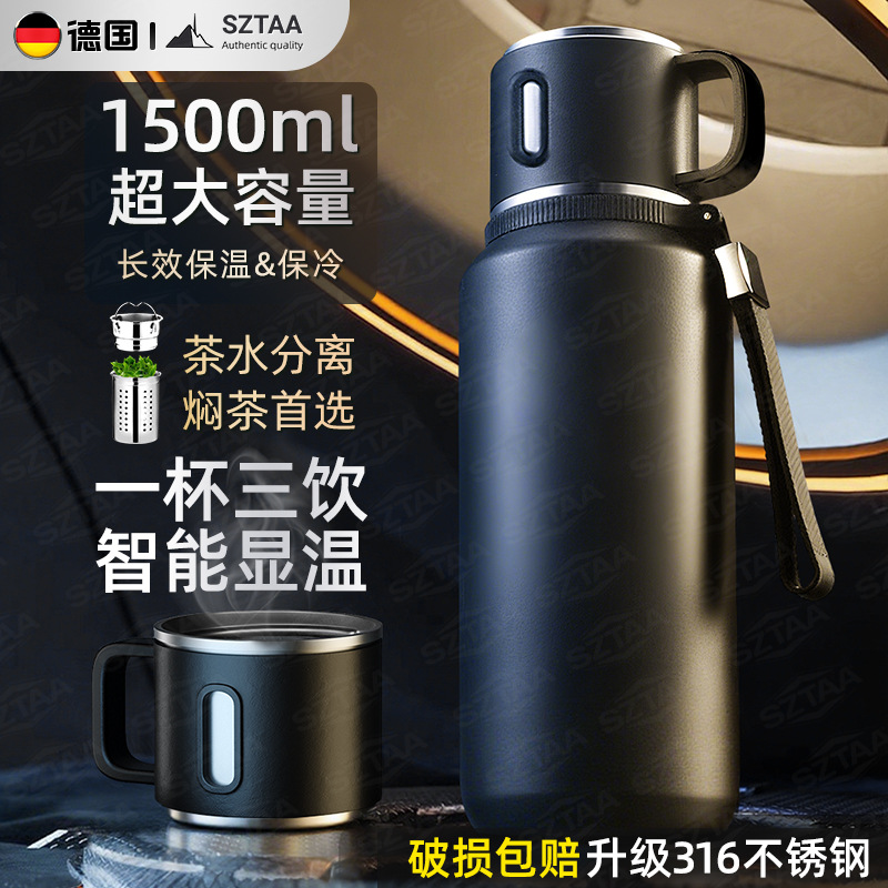 保温カップ大容量男316ステンレス24新型大促進限定冬蒸し込み茶水分離水筒