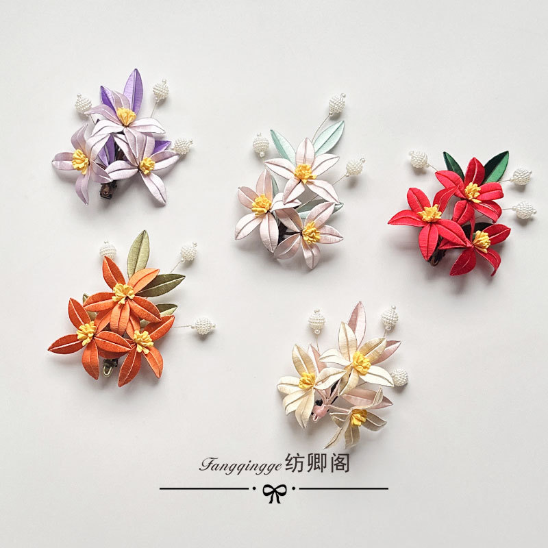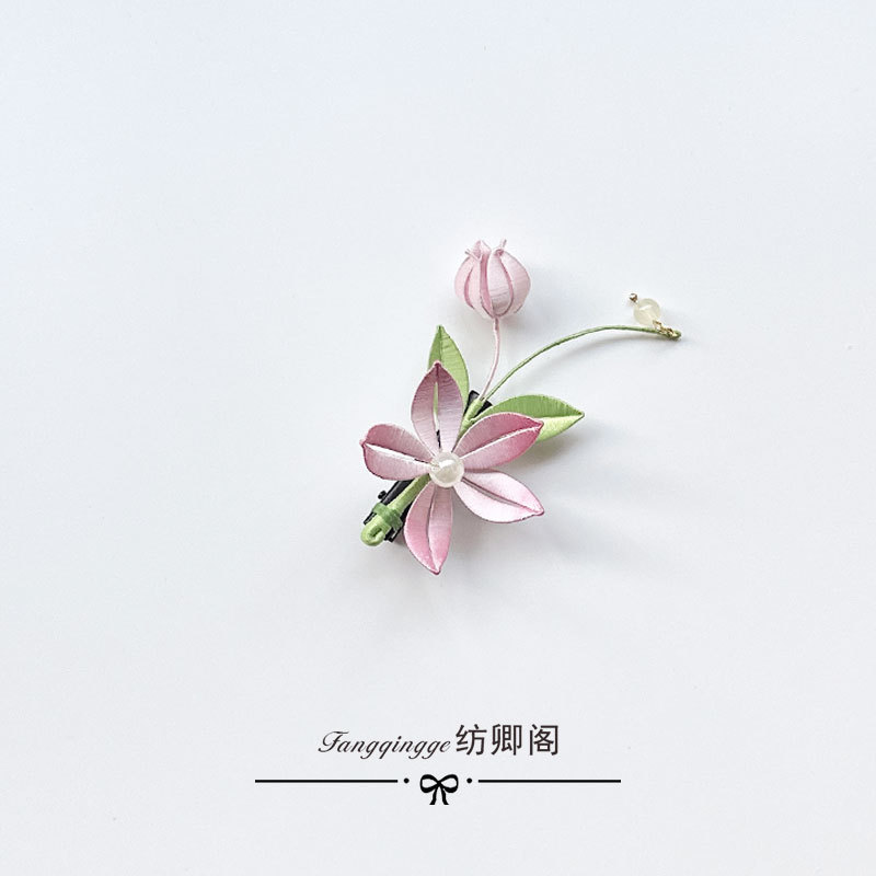 原创缠花多瓣桃花鸭嘴夹日常发饰百搭饰品古风汉服发夹边夹配饰