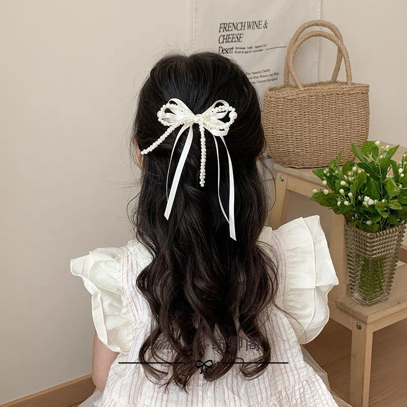 白いサテンの蝶結びのヘアピン子供の女性の高級感があります。