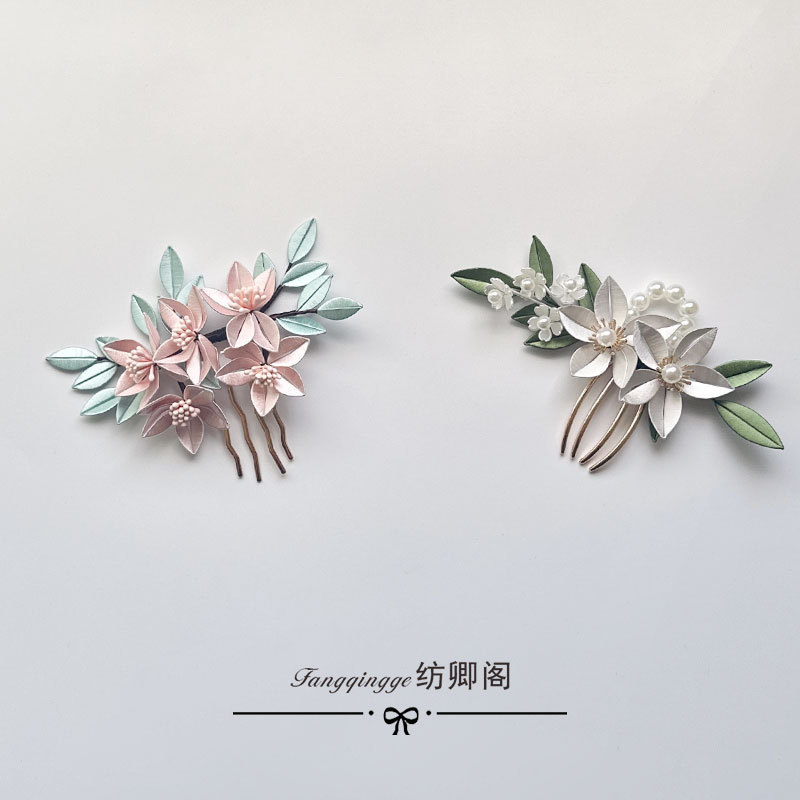 原创非遗缠花发梳珍珠发饰古风花朵发夹汉服儿童头饰边夹唐风插梳