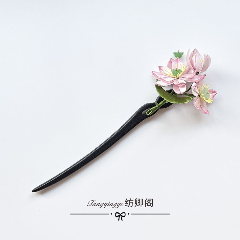 オリジナルの桃の木のかんざしは手作業で花のかんざしを巻いています。