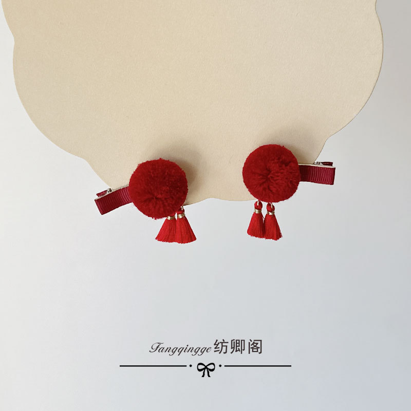 中国風子供の頭飾りアイスキャンディー瓢箪赤いフリンジ毛玉ヘアクリップ古風新年髪飾りペアクリップアクセサリー