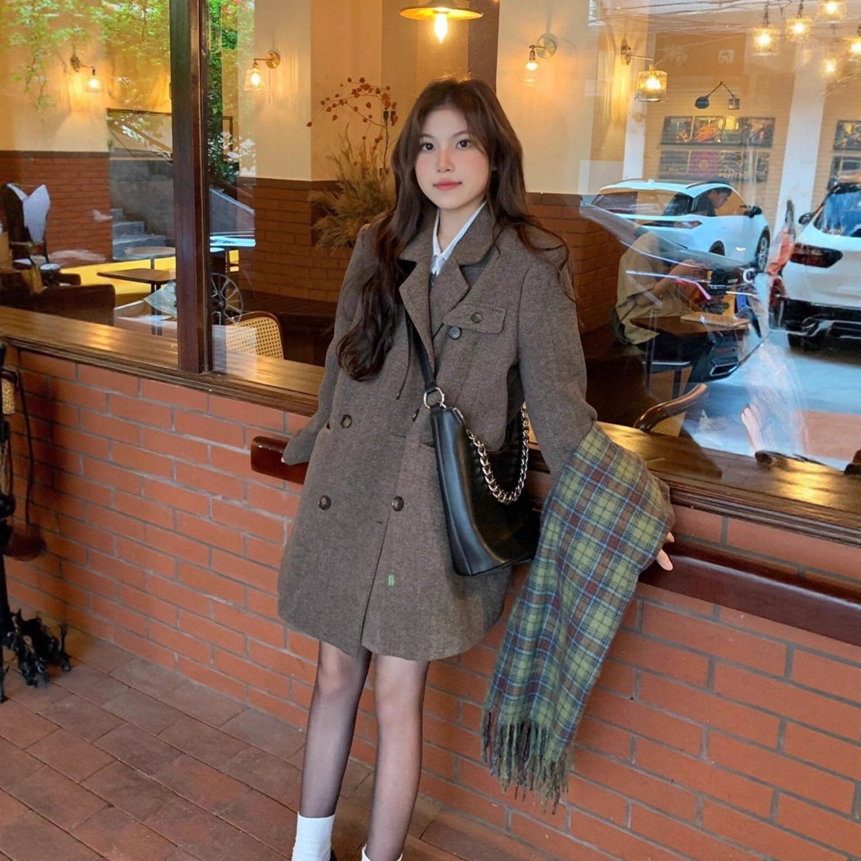 韩系高级感气质咖色毛绒拼接加厚外套女冬季新款百搭显瘦毛呢大衣