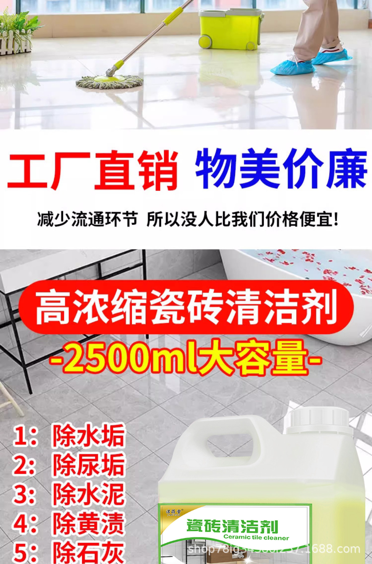 颜色分类 5斤瓷砖清洁剂(送喷壶)*1桶,5斤地板清洁剂(送喷壶)*1桶,7.6斤瓷砖清洁剂*1桶,7.6斤高泡地毯清洁剂*1桶,3.3升静电尘推油*1桶,7.6斤瓷砖清洁剂*4桶,7.6斤高泡地毯清洁剂*4桶,3.3升静电尘推油*4桶
