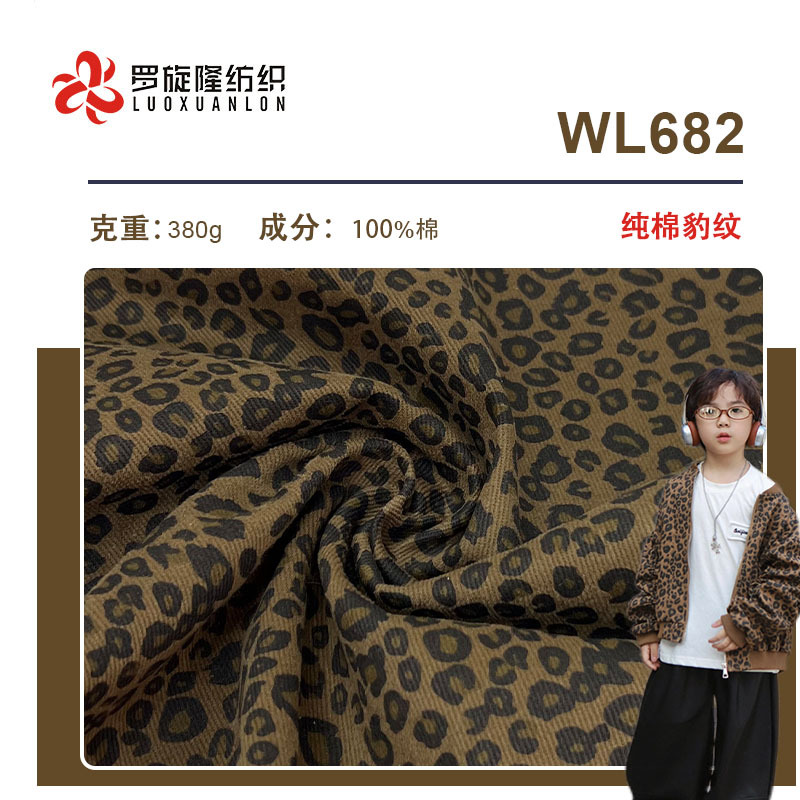 现货全棉印花面料小豹纹重磅秋冬豹纹裤子外套纯棉童装潮牌面料