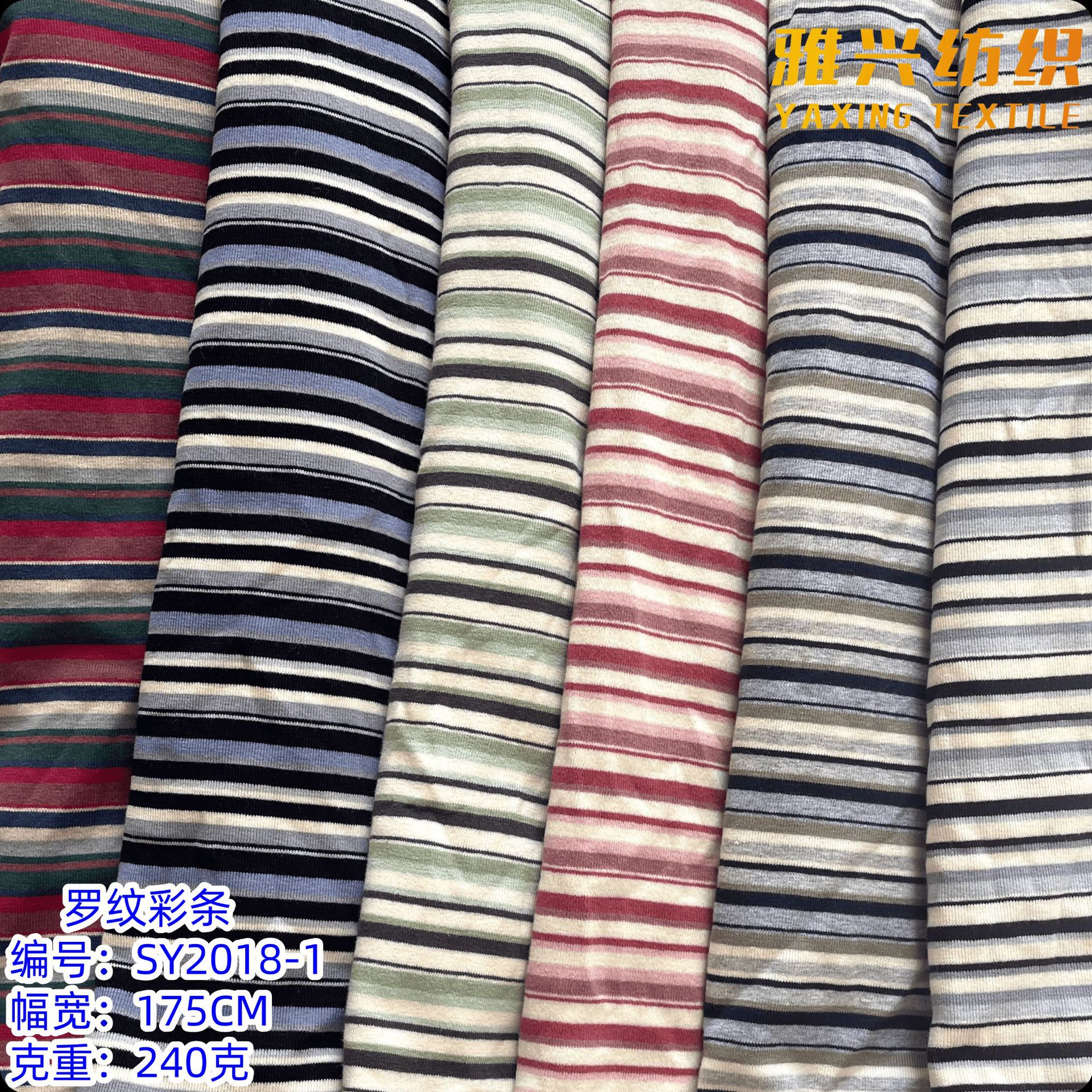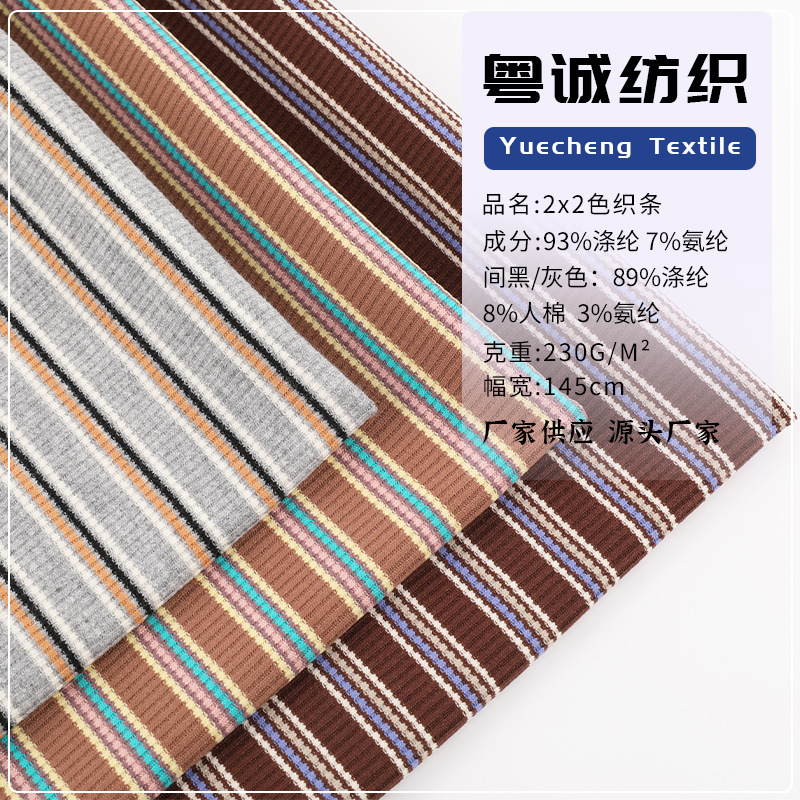 2x2针织条纹面料 涤纶色织条布料 230g童装打底衫t恤彩色间条布料