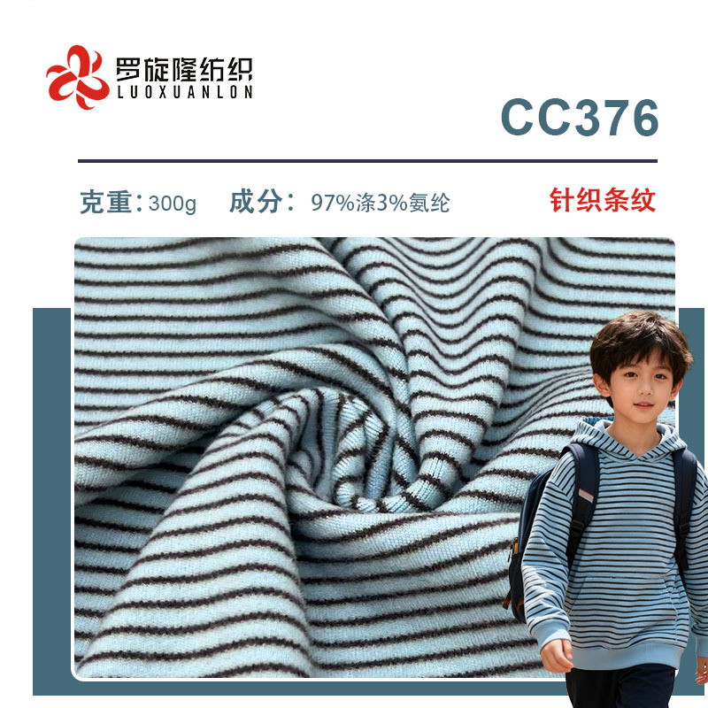 弹力针织条纹面料横彩条色织汗布中大现货300g95涤T恤童装布料