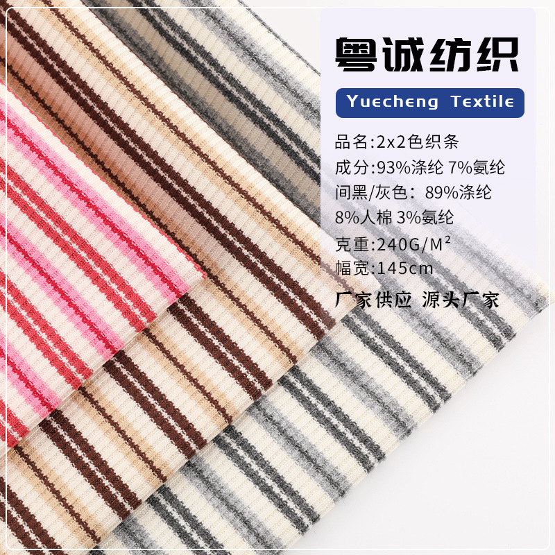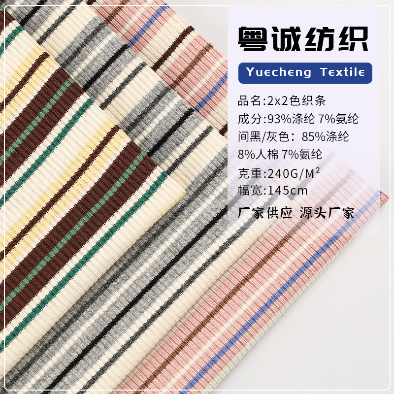 螺纹条纹面料 230g色织坑条罗纹布 2*2涤氨条纹针织服装服饰布料