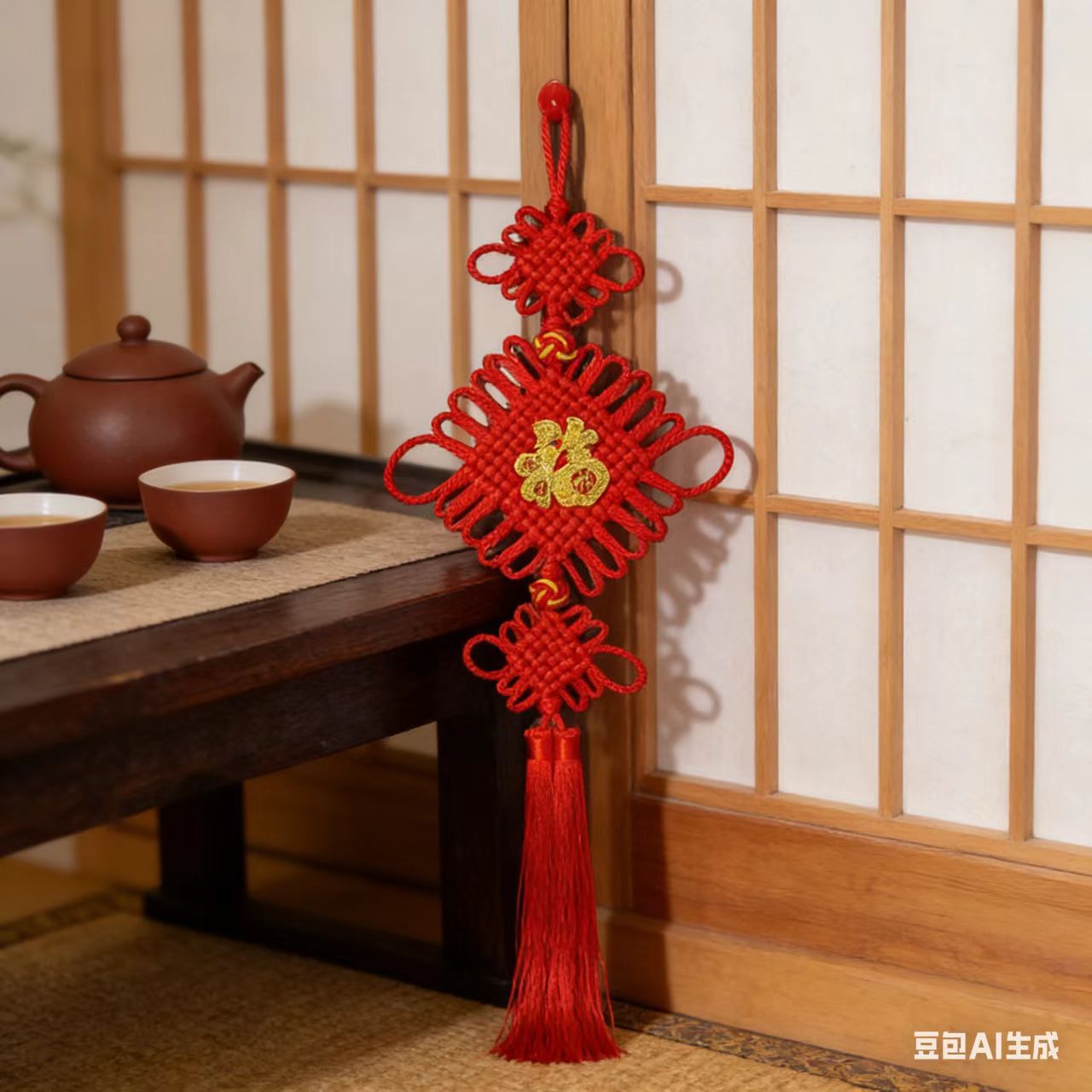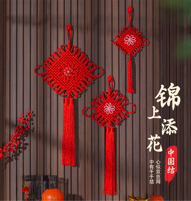 新款中国结对联挂件客厅玄关入户门喜庆装饰品乔迁新居大红平安结