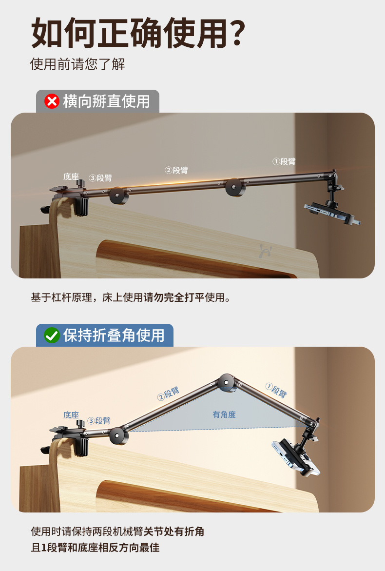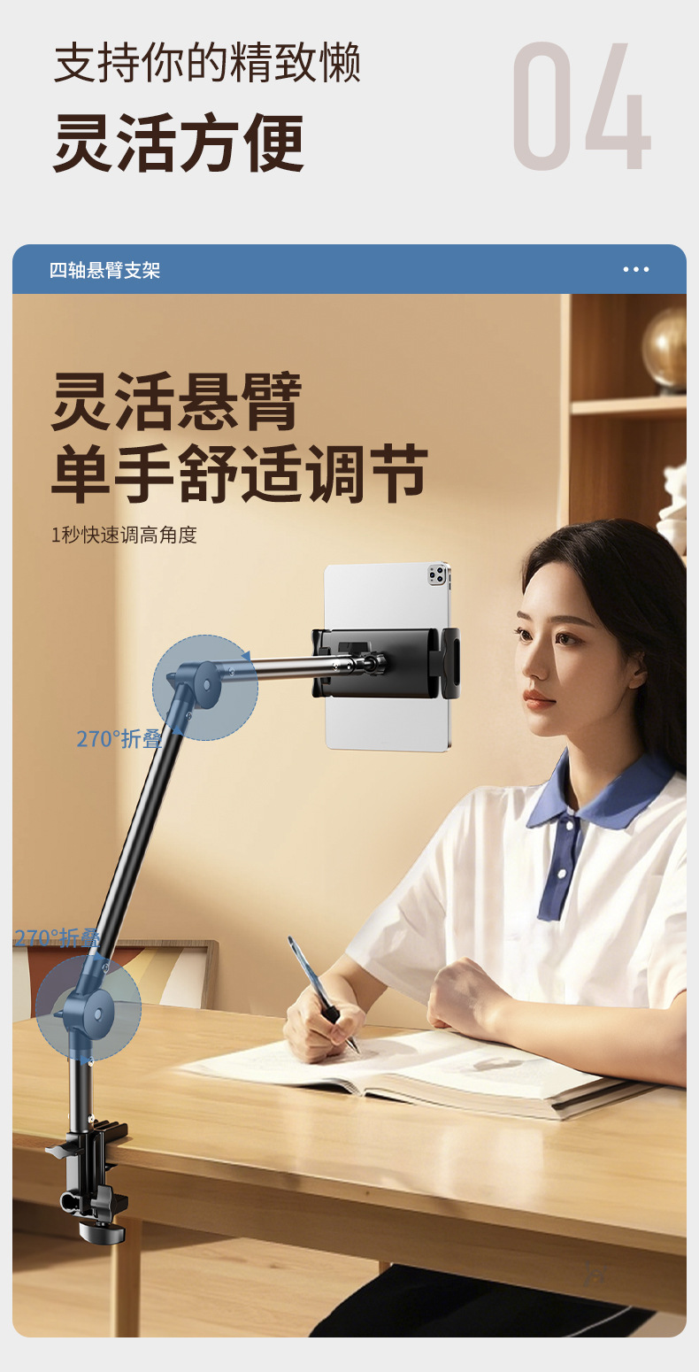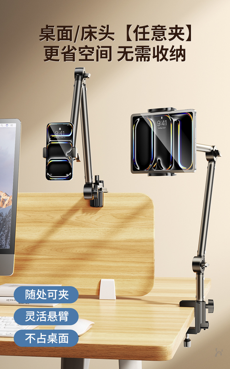 金属板懒人床头支架追剧神器桌面360°旋转手机悬臂支出学习支架