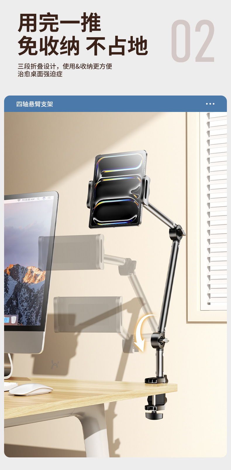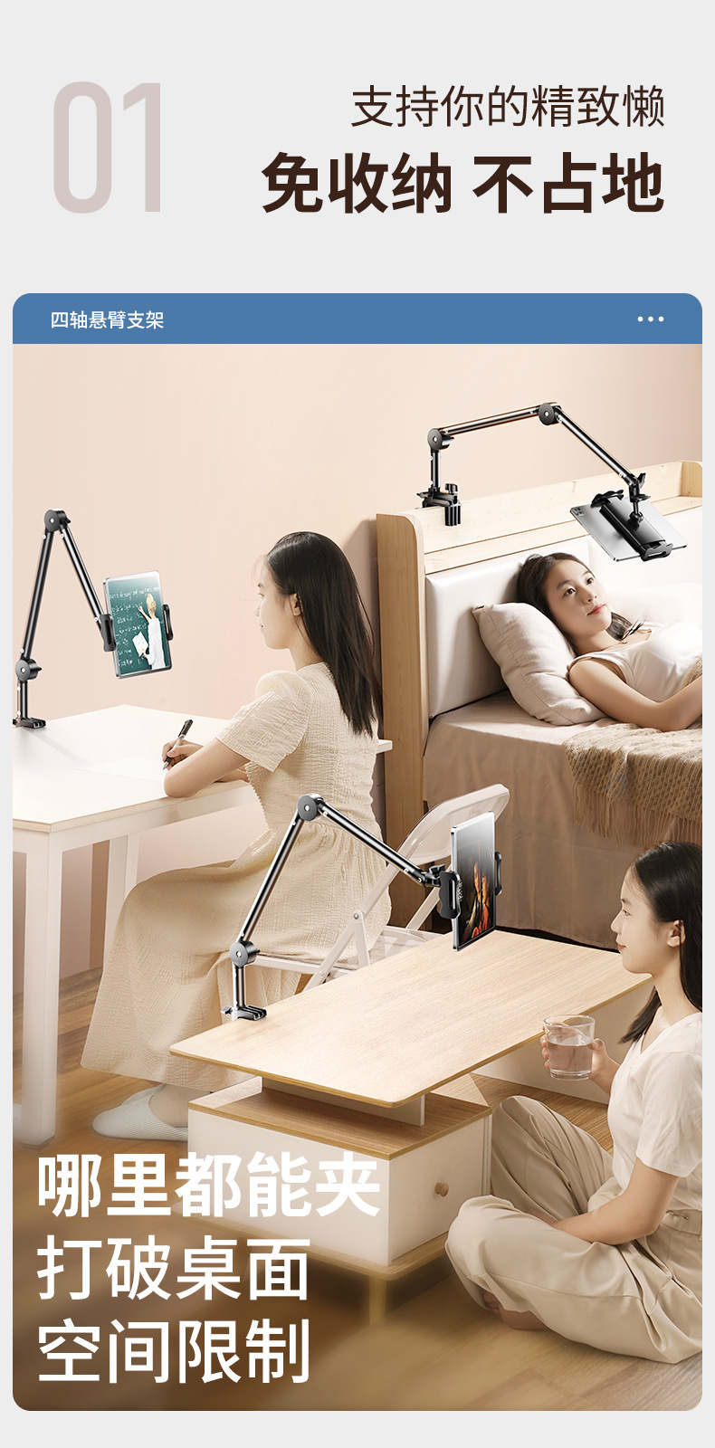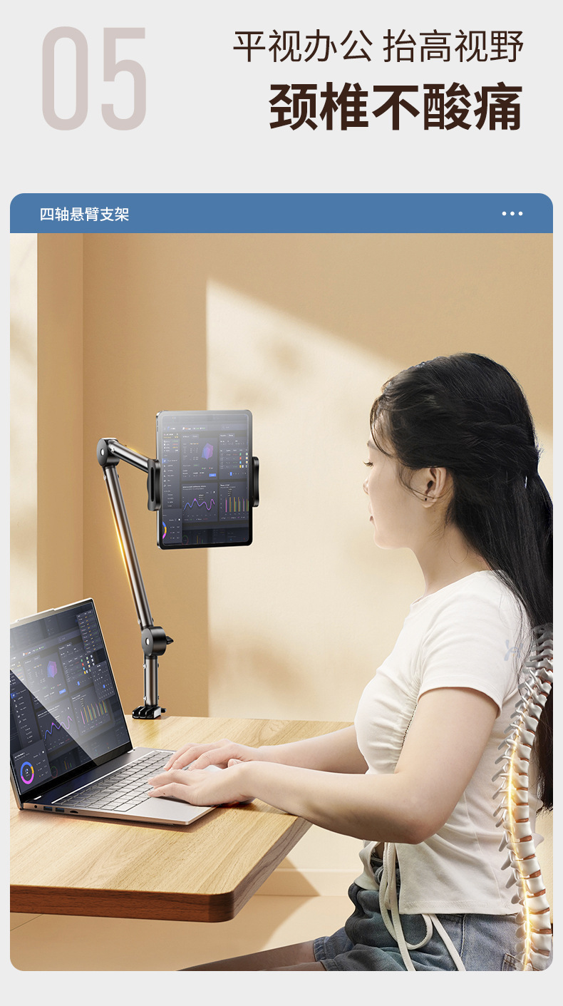 金属板懒人床头支架追剧神器桌面360°旋转手机悬臂支出学习支架