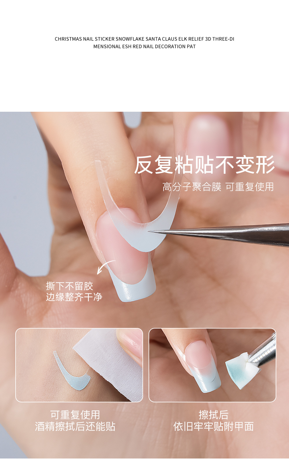 美甲双层镂空拍拍胶贴纸星星法式圣诞雪花蝴蝶结拍拍胶辅助模板贴