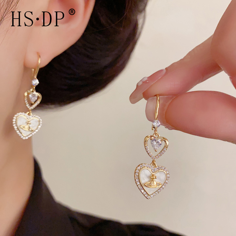 法式时尚简约设计感锆石爱心土星流苏耳钩女个性轻奢百搭显瘦耳坠