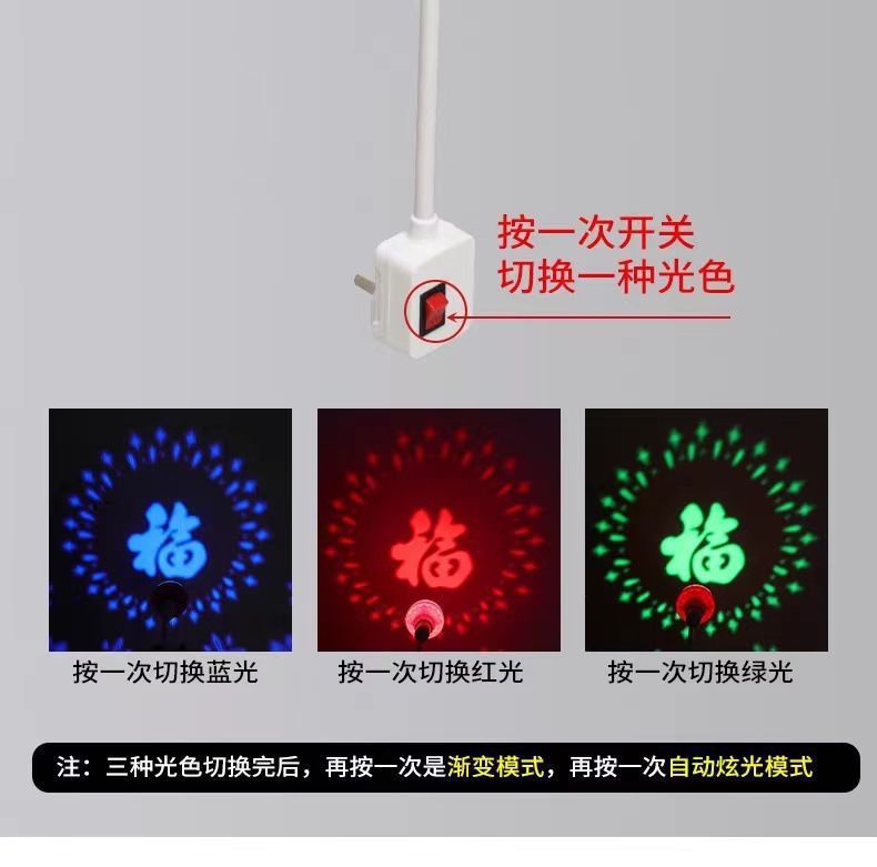 新年春节装饰灯七彩灯发财福字彩灯Led灯五颜六色福字彩灯旋转灯