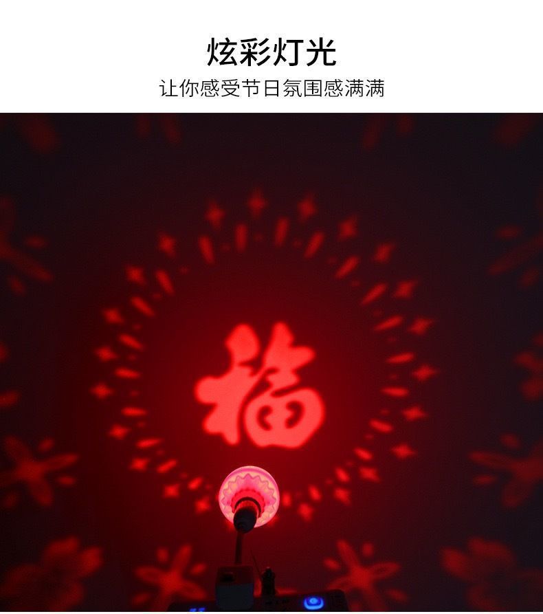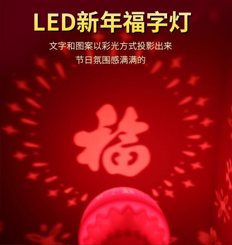 2026新款马年七彩变色福字灯泡过年春节喜庆投影氛围彩灯le发财灯