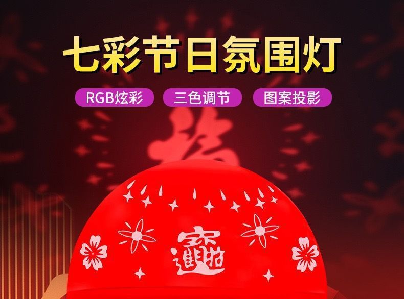 2026新款七彩福字灯高清投影氛围灯福字灯灯炫彩家用新年春节聚会
