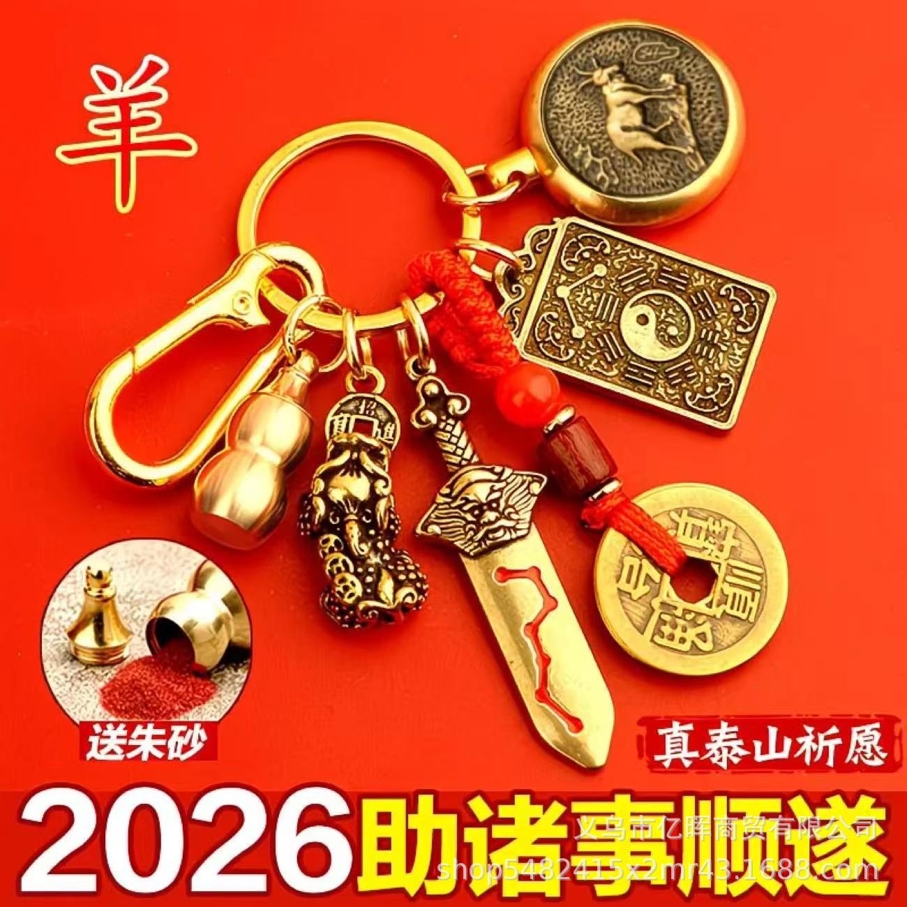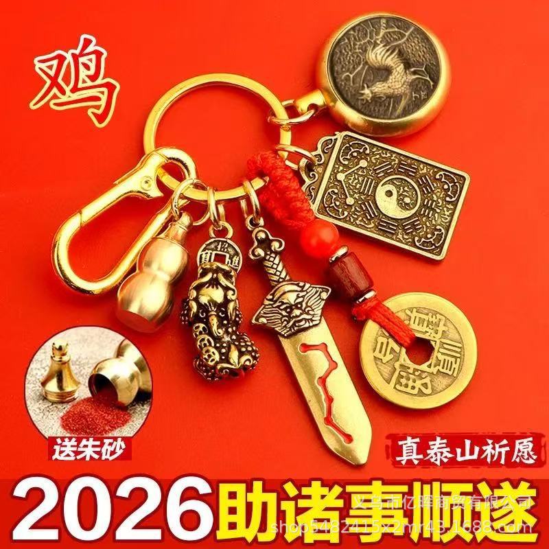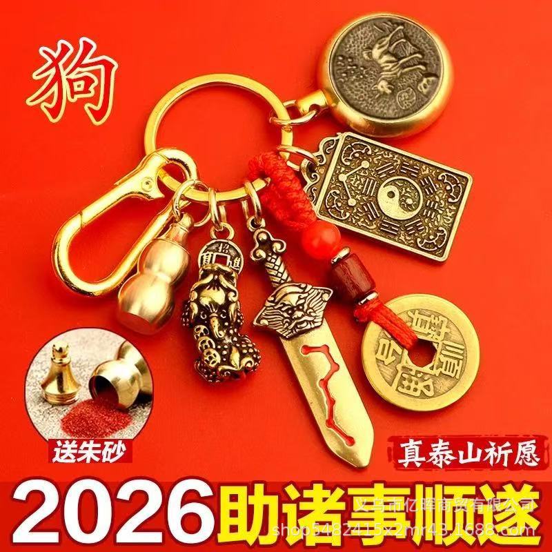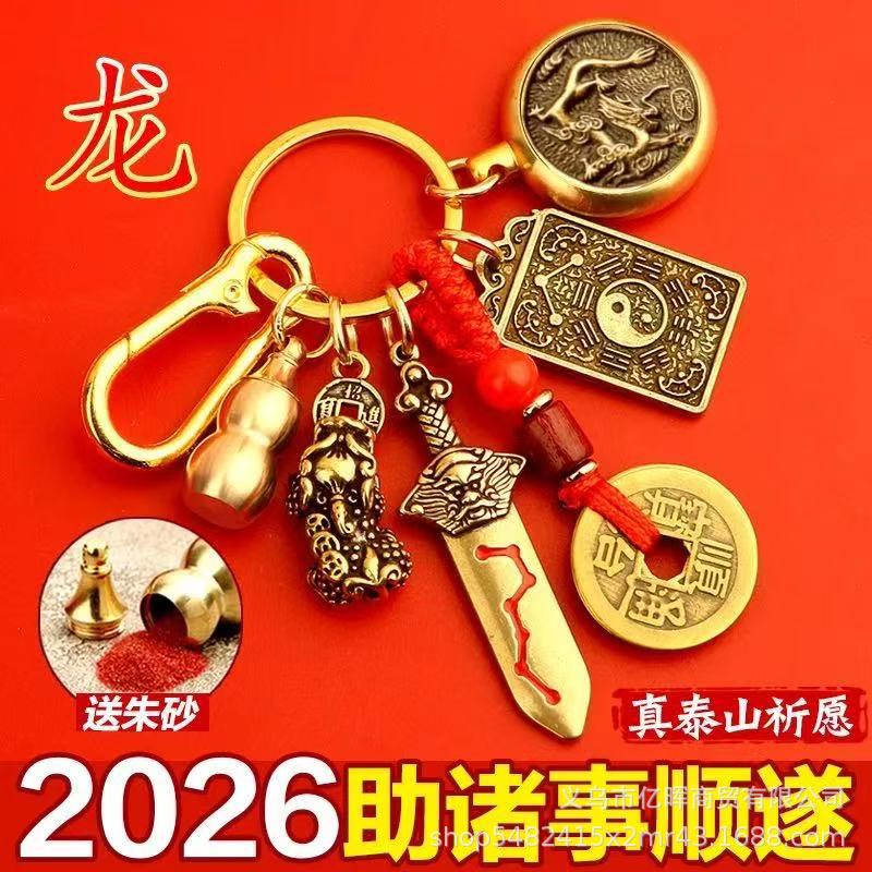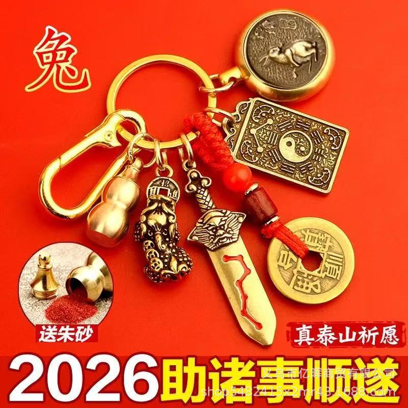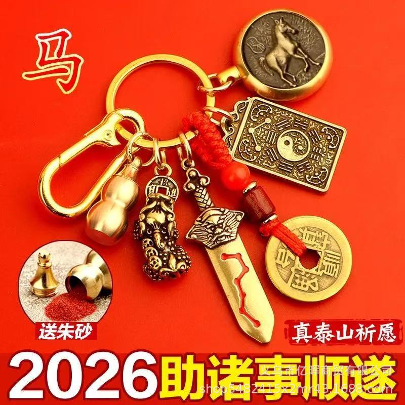黄铜2026丙午马年文哲大将军太岁钥匙扣本命年挂饰包挂汽车锁匙扣