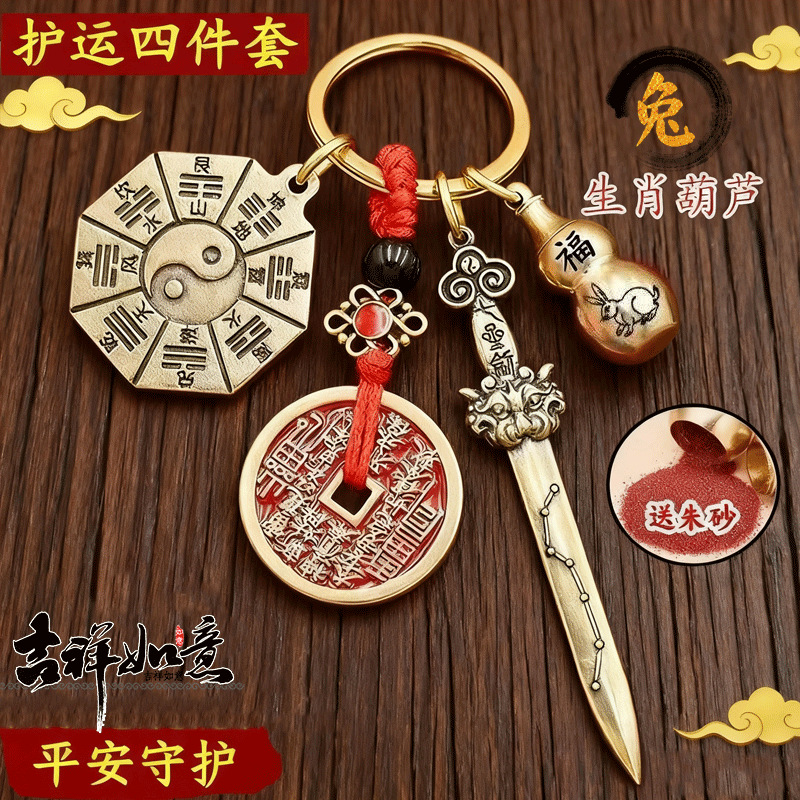 山鬼钱真品转转钥匙扣挂件铜貔貅黄铜七星剑朱砂铜葫芦挂件招财