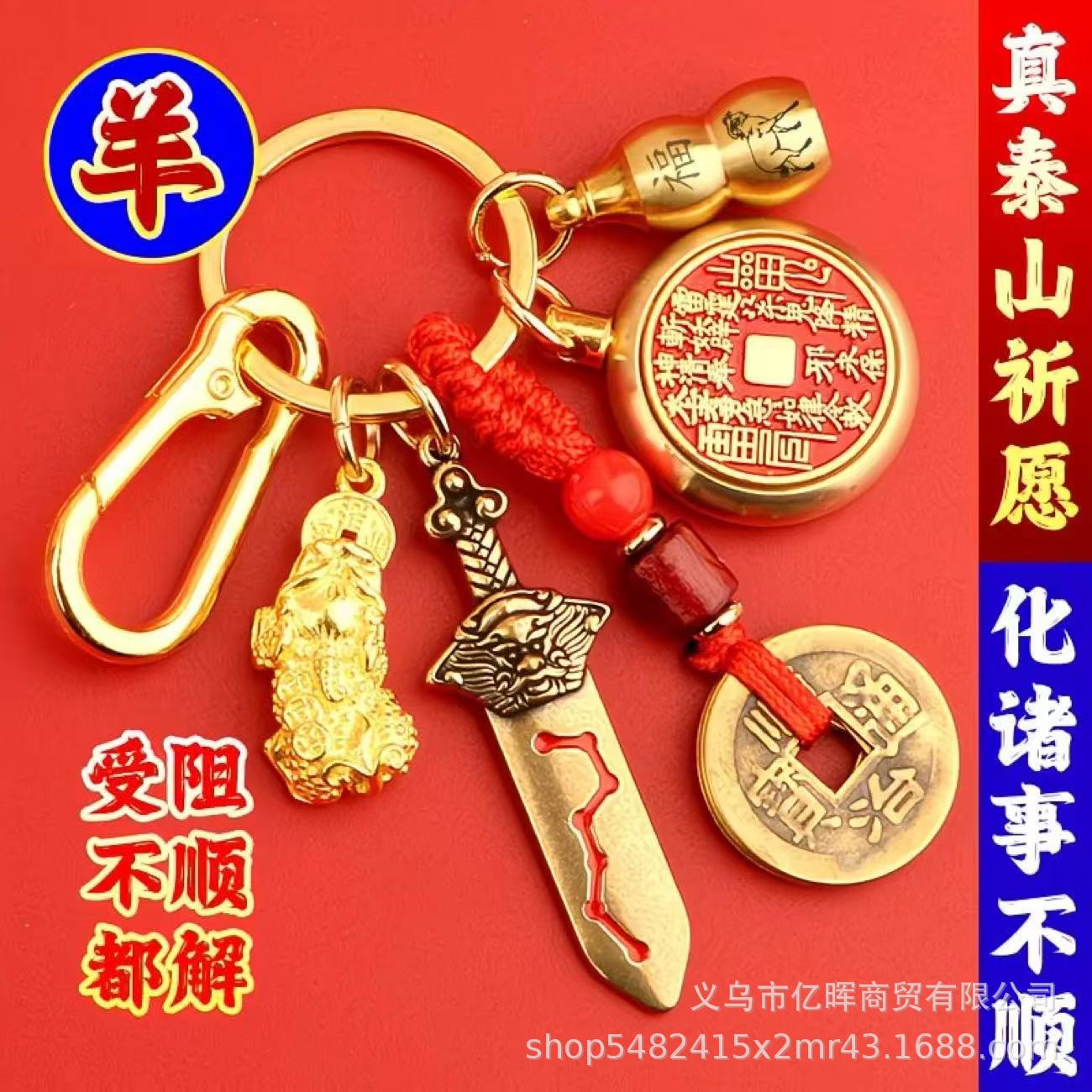 师傅推荐公母貔貅十二生肖福牌黄铜葫芦送朱砂经贸钥匙扣挂件批发