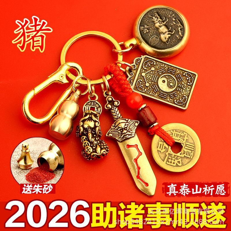 【老师推荐】黄铜公母貔貅十二生肖八大守护钥匙扣挂件属相挂饰礼