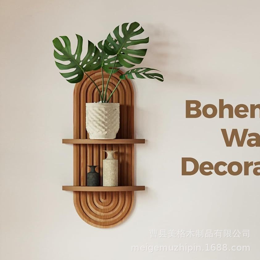 现货跨境木制墙面置物架客厅背景墙花瓶摆件装饰架家居杂物收纳架