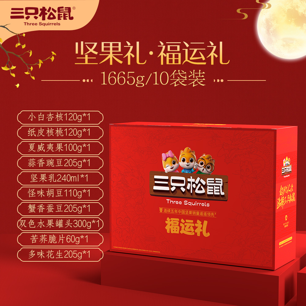 【三只松鼠_福运礼坚果大礼包1665g/10袋】每日坚果零食礼盒送礼