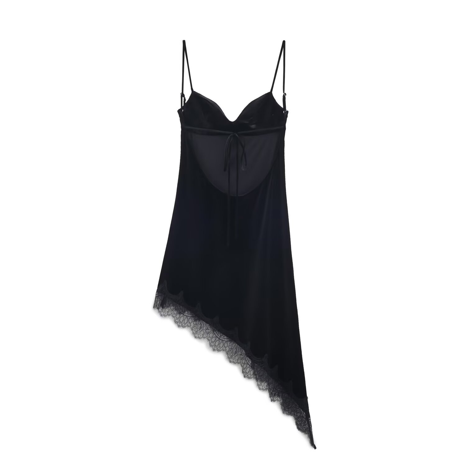 PB&ZA女装2025年冬季新款系列丝缎质感不对称蕾丝连衣裙4772042