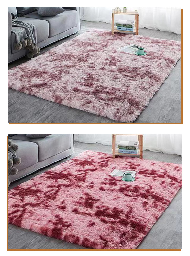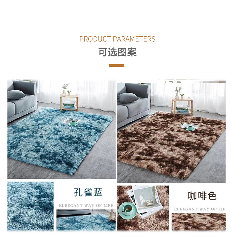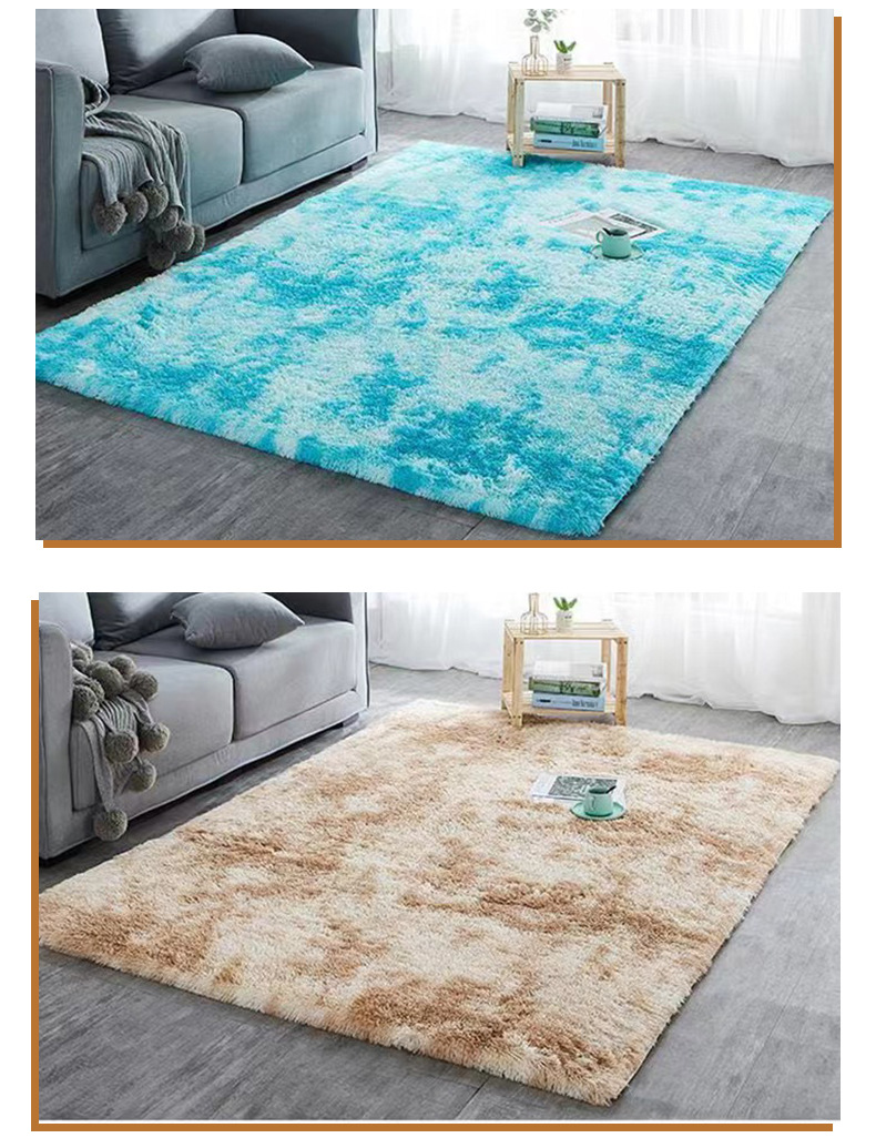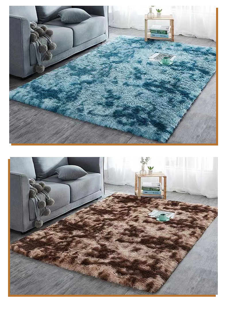 亚马逊热销丝毛扎染地毯客厅长毛加厚沙发茶几地毯防滑卧室床边毯
