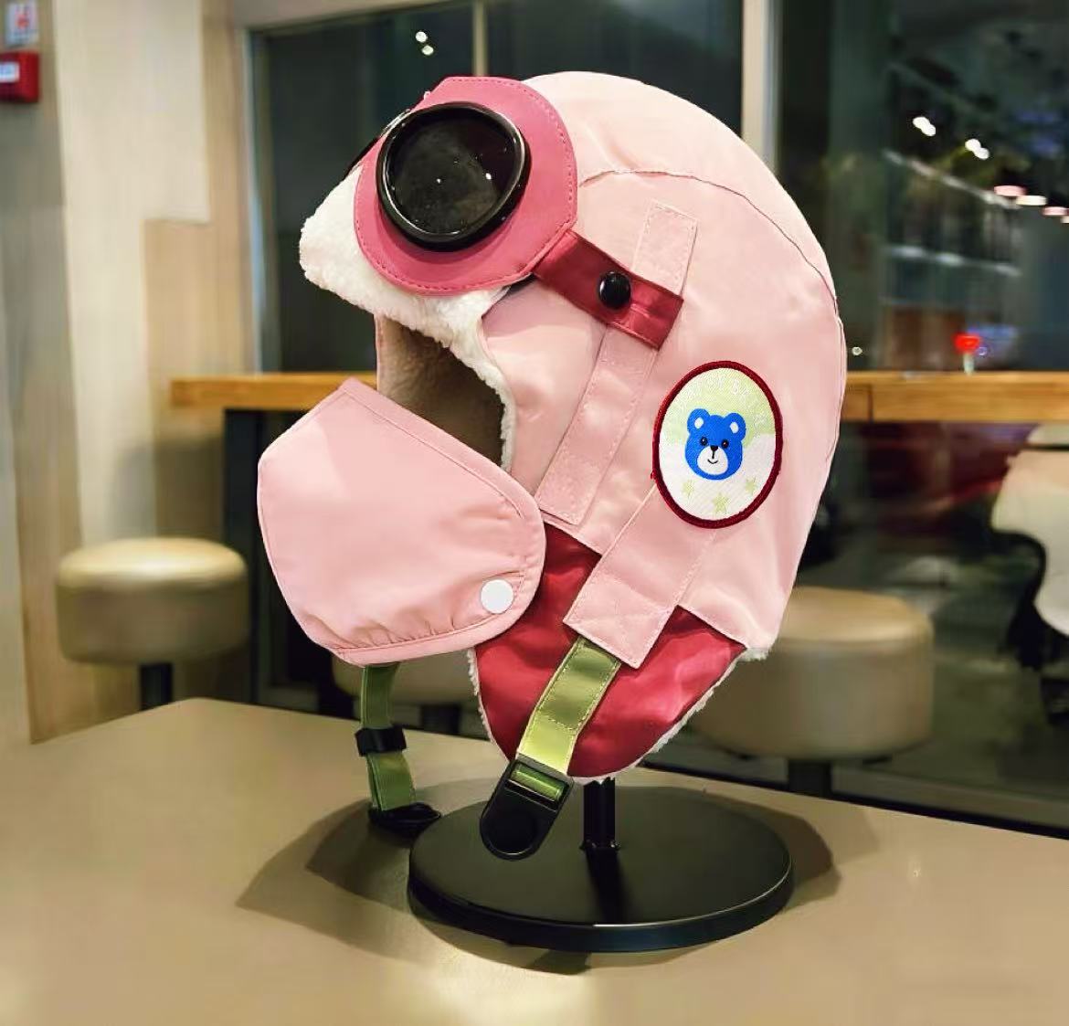 中大童可爱小熊飞行员眼镜雷锋帽子女秋冬亲子男童加绒保暖护耳帽